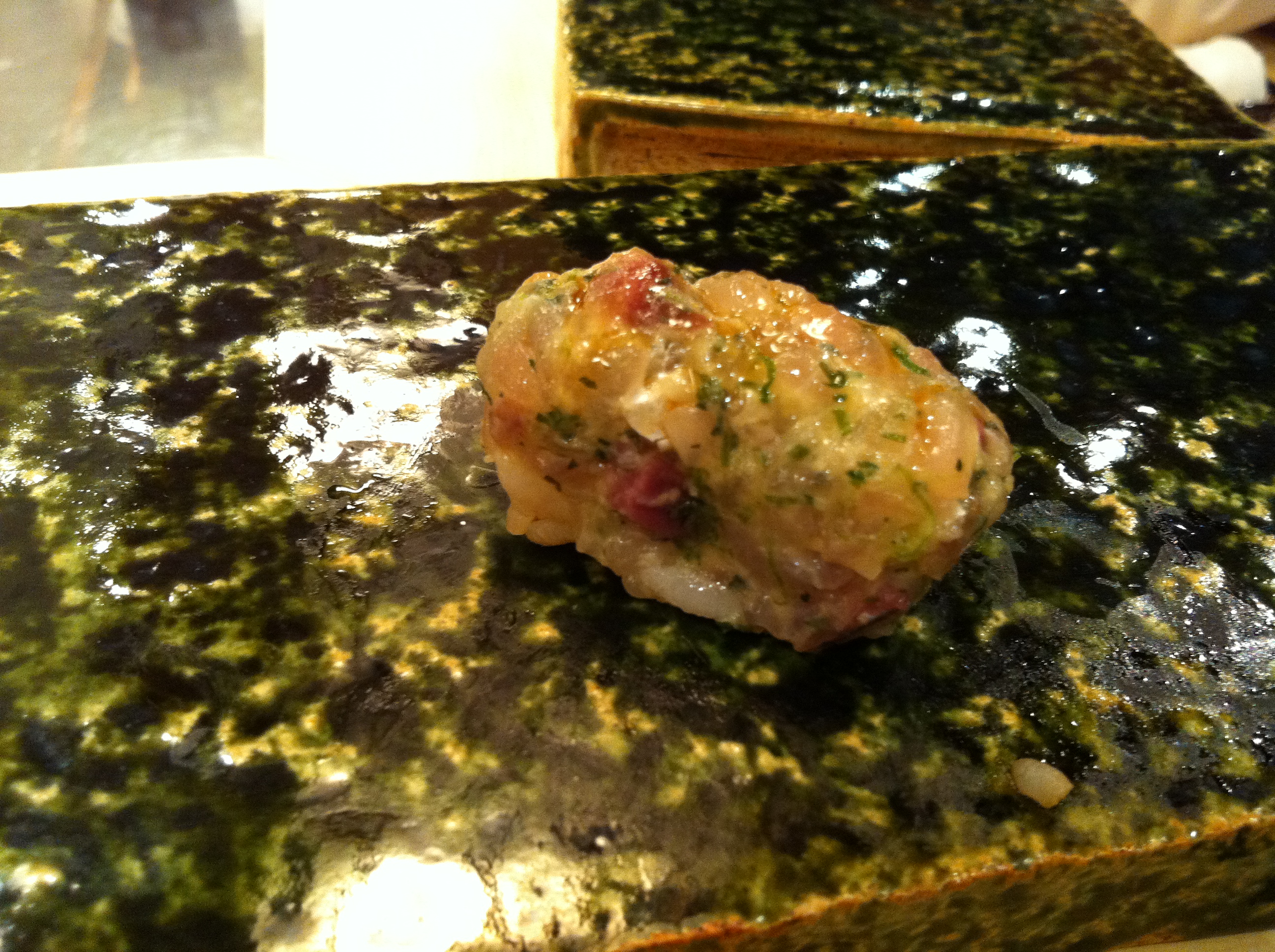 #5: A course that consists of a spoonful of a wagyu-and-caviar-mix and a pickled bell pepper on the side that you’re supposed to eat after. (Course #5 in the 2nd Urasawa post)
