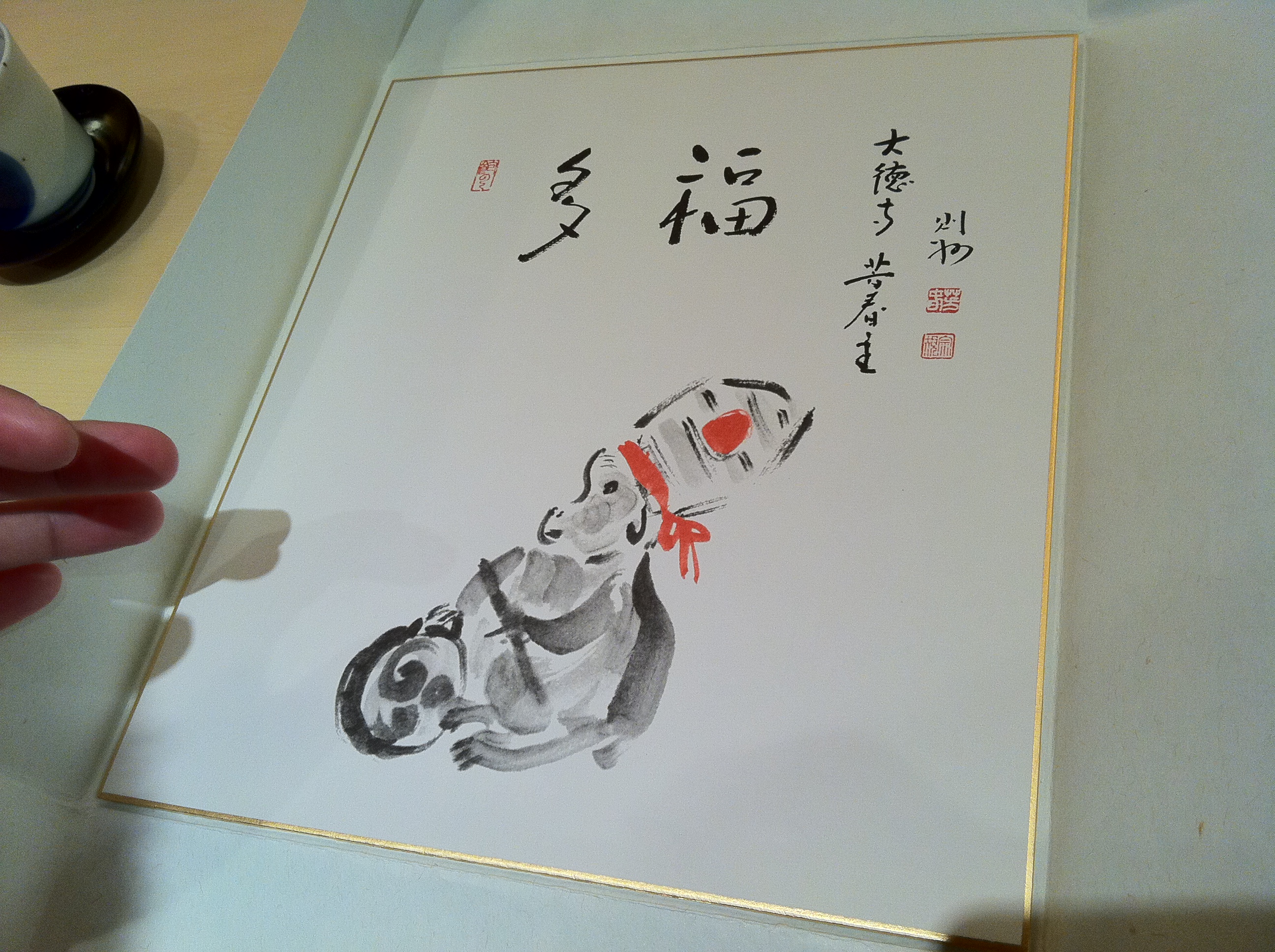 After the meal, Hiro gave Chris a birthday present that Hiro apparently drew and wrote!