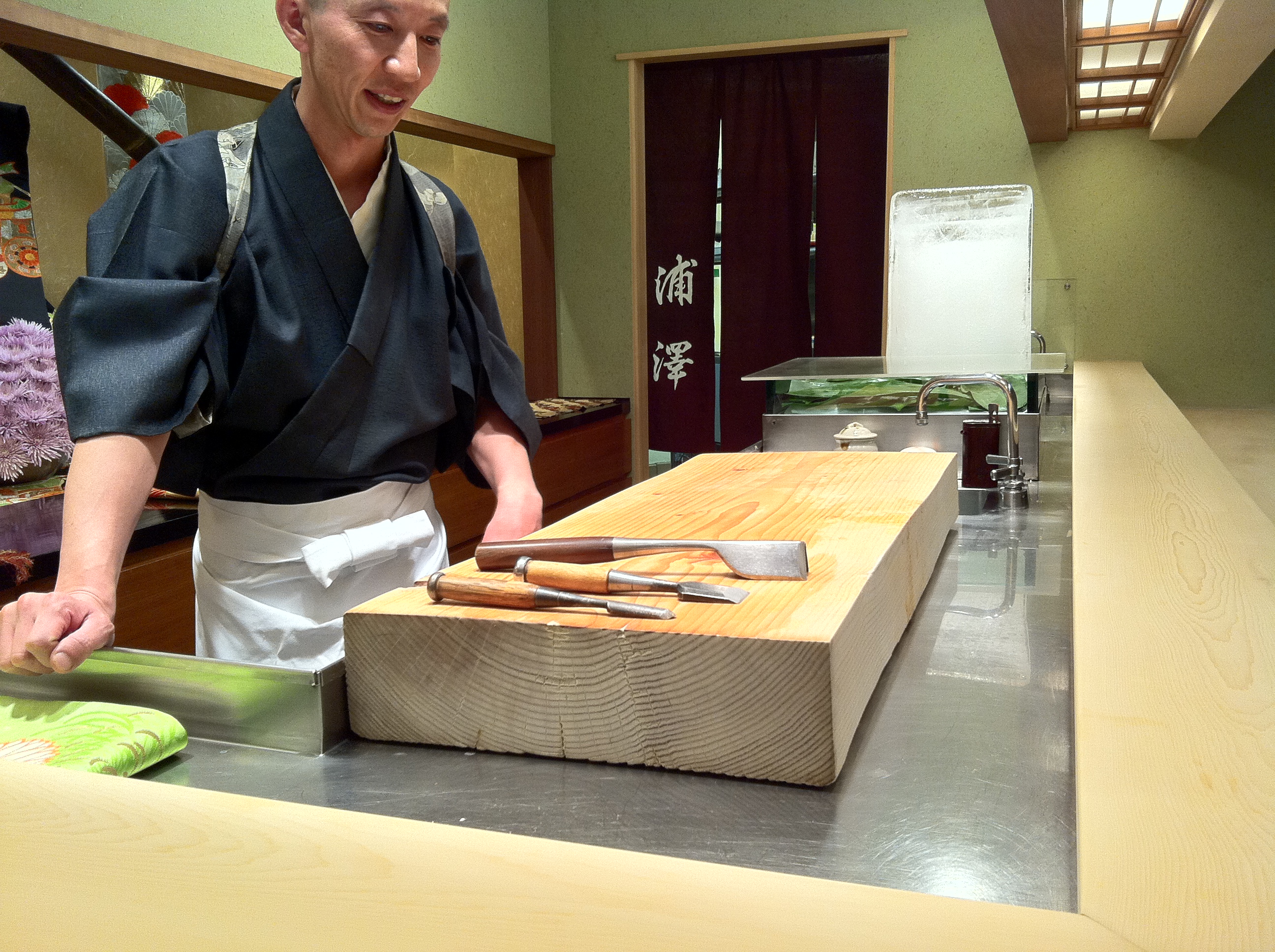 Hiro was just relaxing and showing us his knives after everyone left.