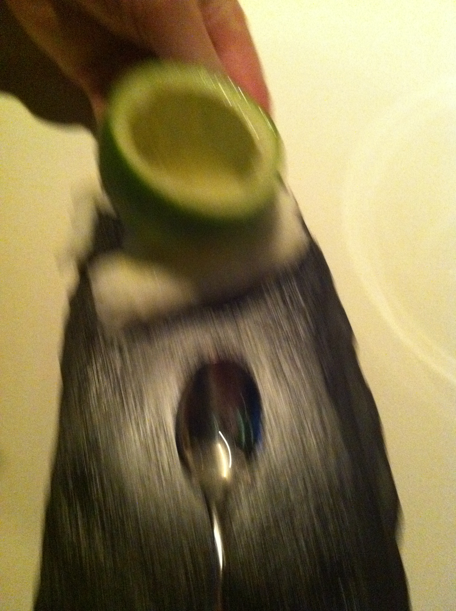 -The center broke, revealing that the plate had a concave center all along! We were supposed to eat the broken pieces of ice that were flavored with mint. (UNFORTUNATELY, Karen stopped recording before you can see anybody actually break the center of the plate… THAT MAKES ME SAD.)