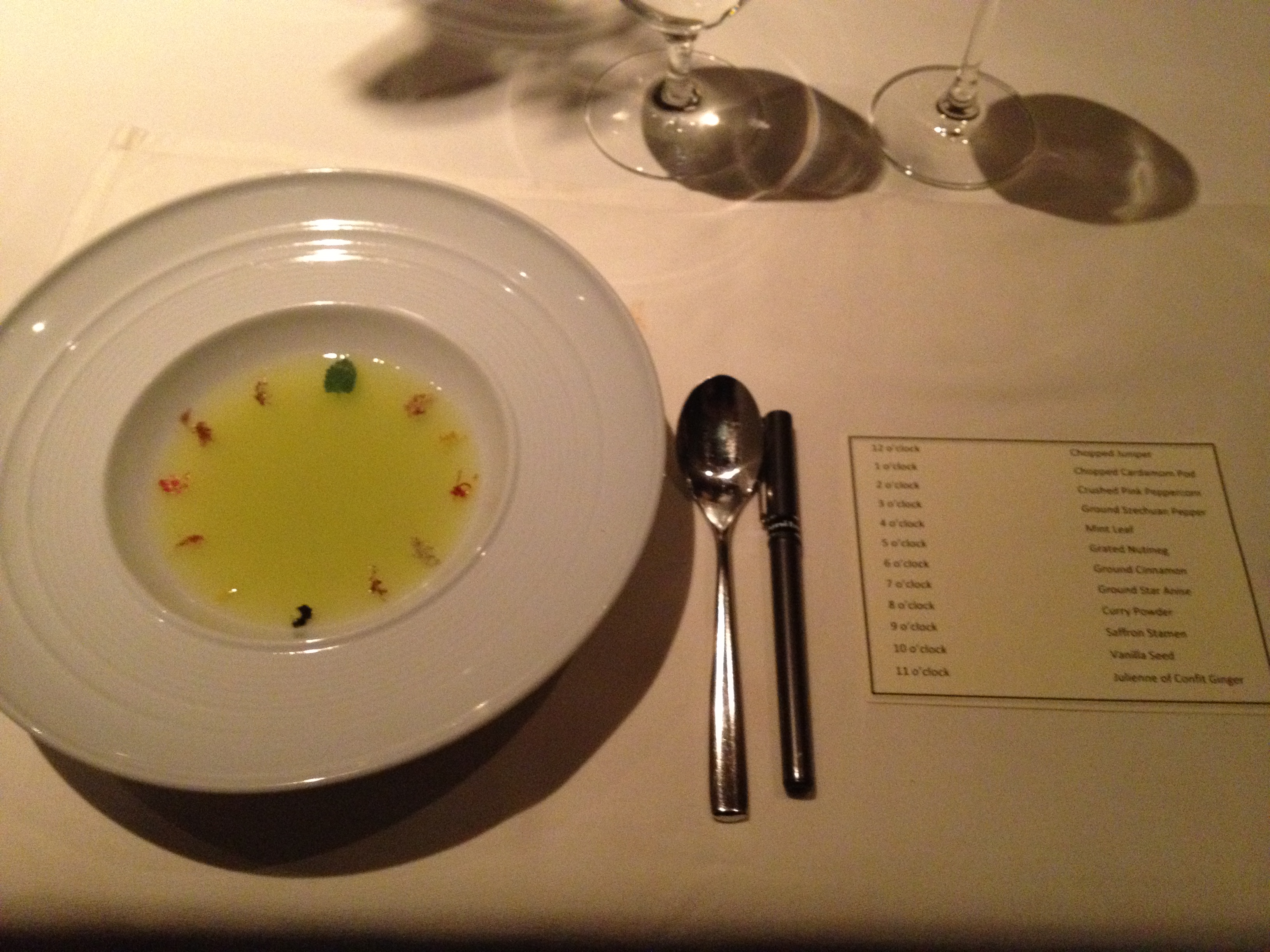-This meal was basically a tribute to Ferran Adrià’s El Bulli; Grant Achatz wanted to faithfully recreate a meal that featured different courses El Bulli has served throughout the years, and Ferran Adrià served as a consultant to help him accomplish this.