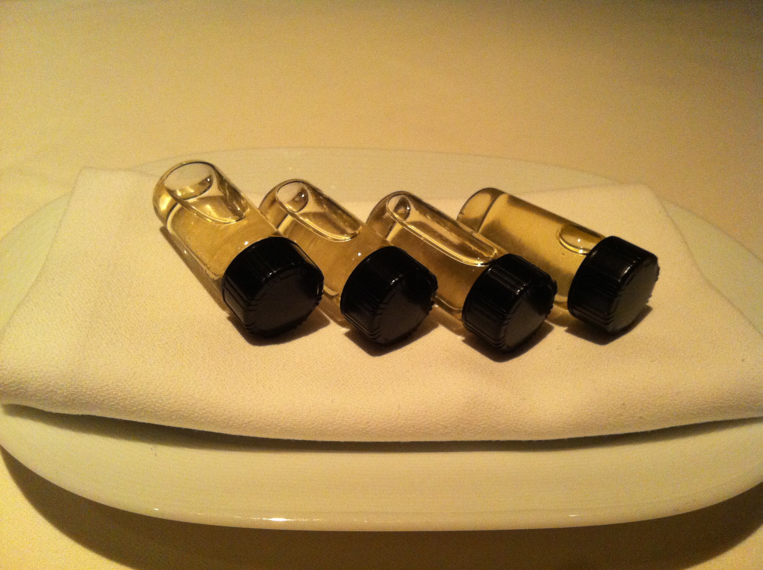 Throughout the meal, they would give us different liquids to add to our drink pairings to help alter the flavor of drinks. I thought this was pretty cool. Instead of giving us new drinks for each course, they would give us solutions to alter our drinks for a “new” drink!
