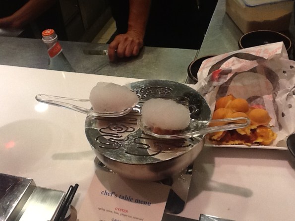 -We sat at the Chef’s Table, which is just kind of a “bar” area that sits next to the open part of the kitchen. The seating makes it really easy to talk to Chef Leung and the rest of the staff during the meal!