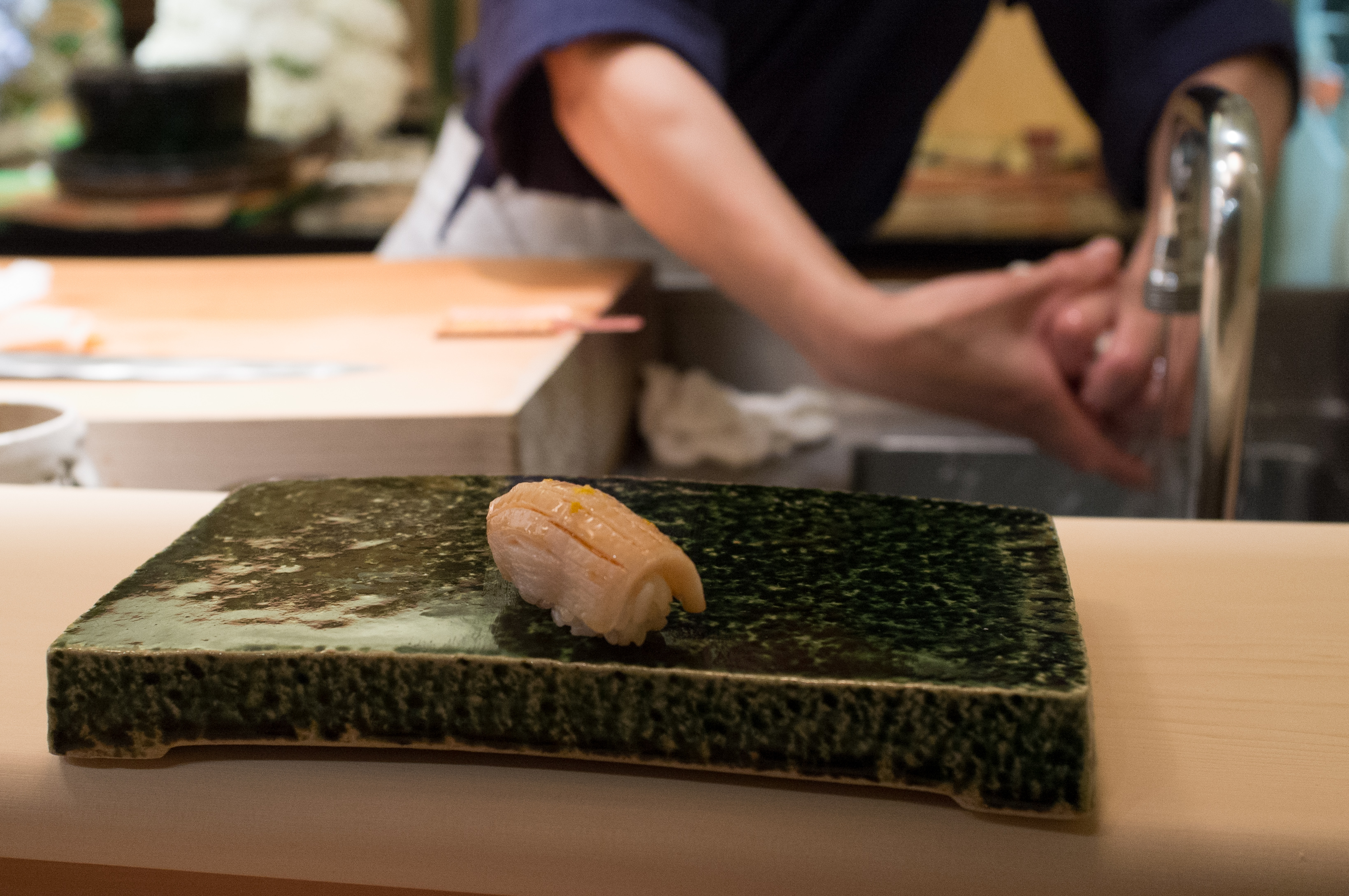 I decided to stop by Urasawa once again while I was in town, and I went with two old friends. Here’s an excerpt from my friend’s site about this meal—it was basically his first really good sushi meal!