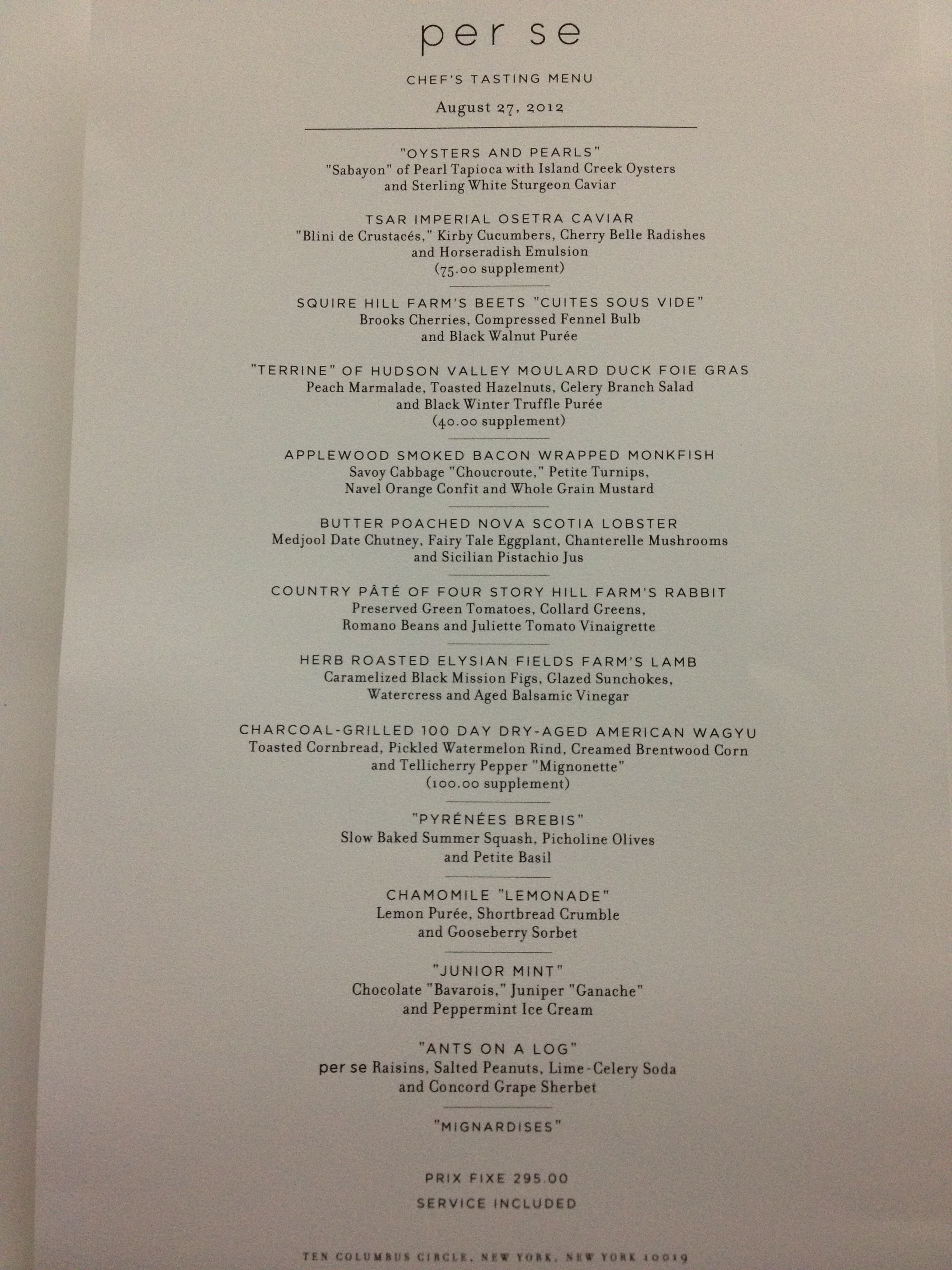 NYC: Per Se (Aug. 2012): Dinner with Josh and Monty