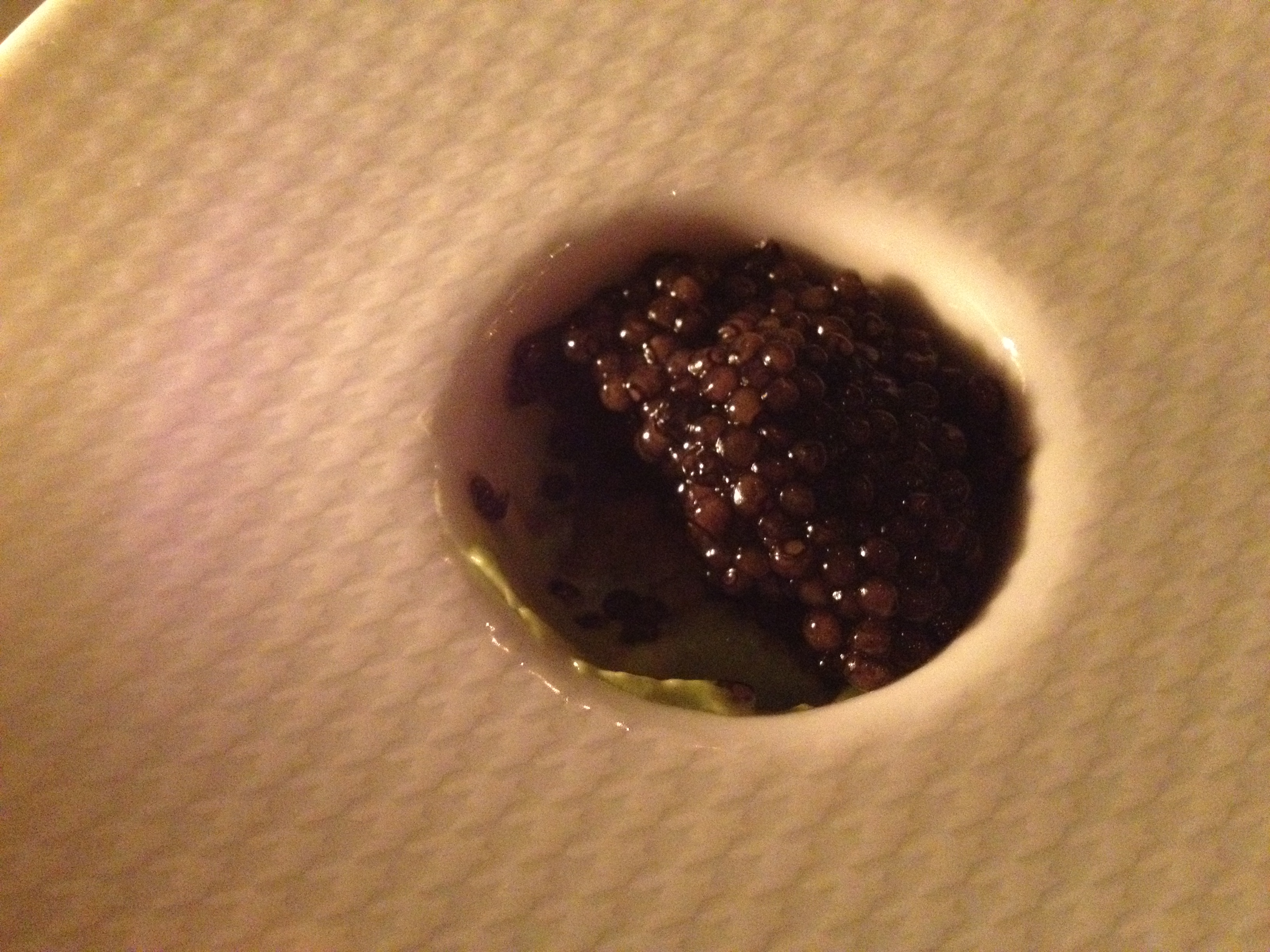 Sterling White Sturgeon Caviar, Hass Avocado Sorbet, and… I forgot :(.