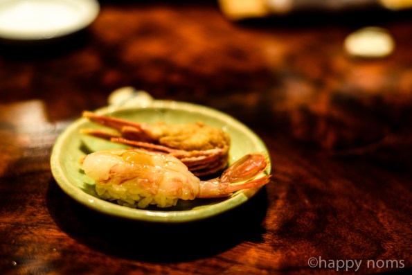 2. Jumbo shrimp with yuzu-miso sauce, with the head on the side.