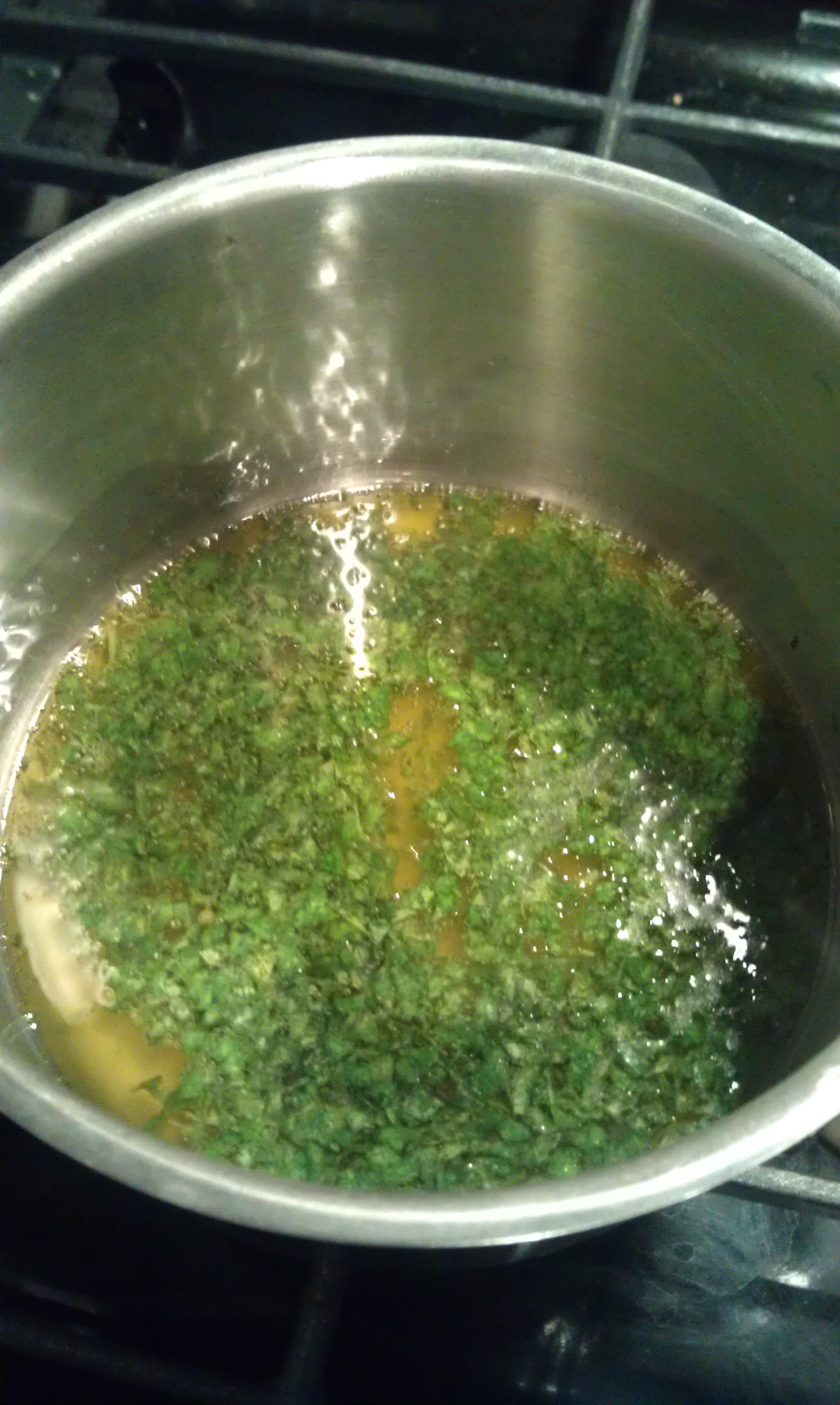 Heat the oil and basil mixture over medium heat for 4 minutes, then turn off heat and let cool for an hour.