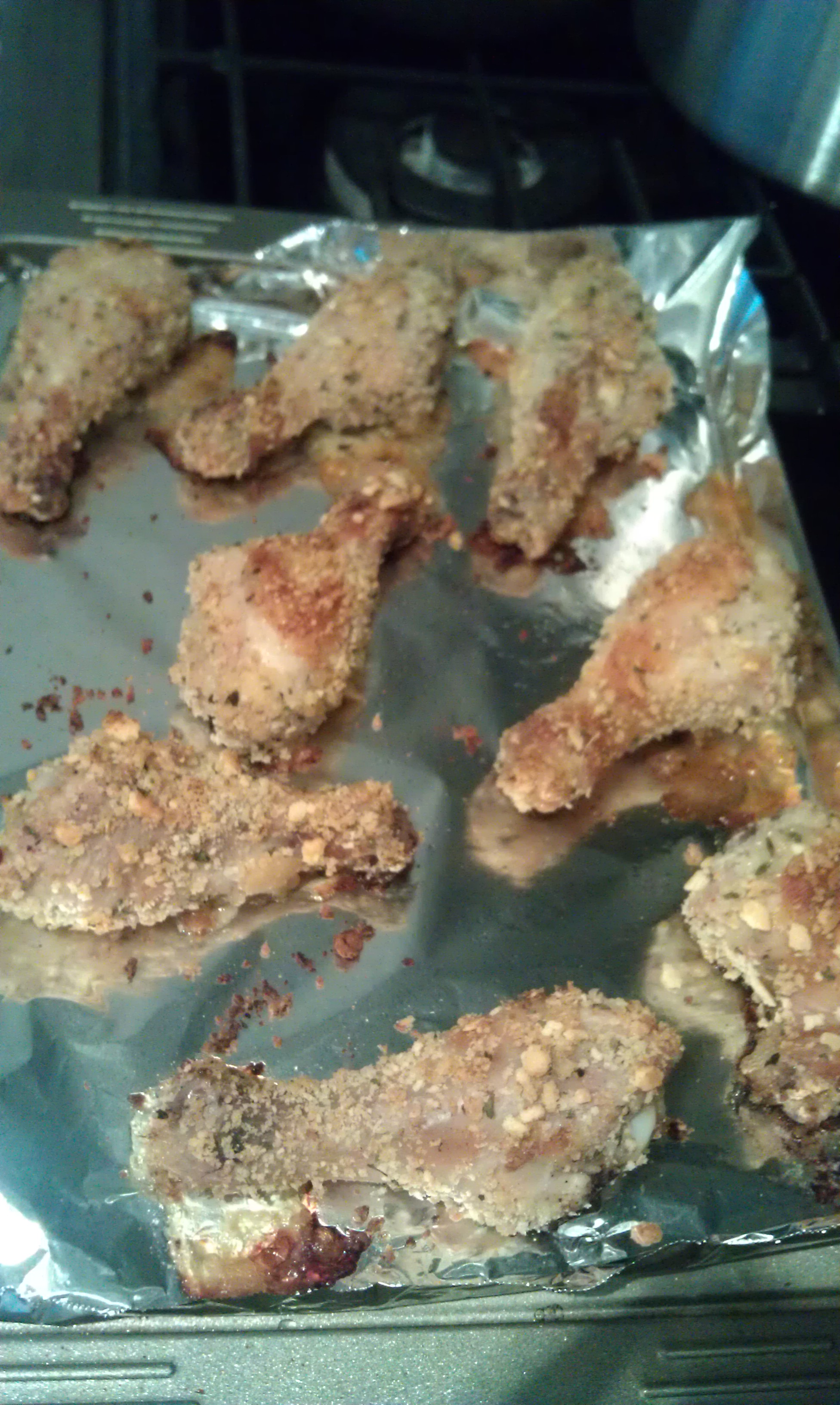 After an overnight marinade, I dusted the chicken in a mixture of panko breadcrumbs and crushed ritz crackers.