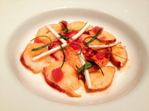 Warm Lobster “Carpaccio”; Ruby Red Grapefruit and Heart of Palm Verjus Sabayon