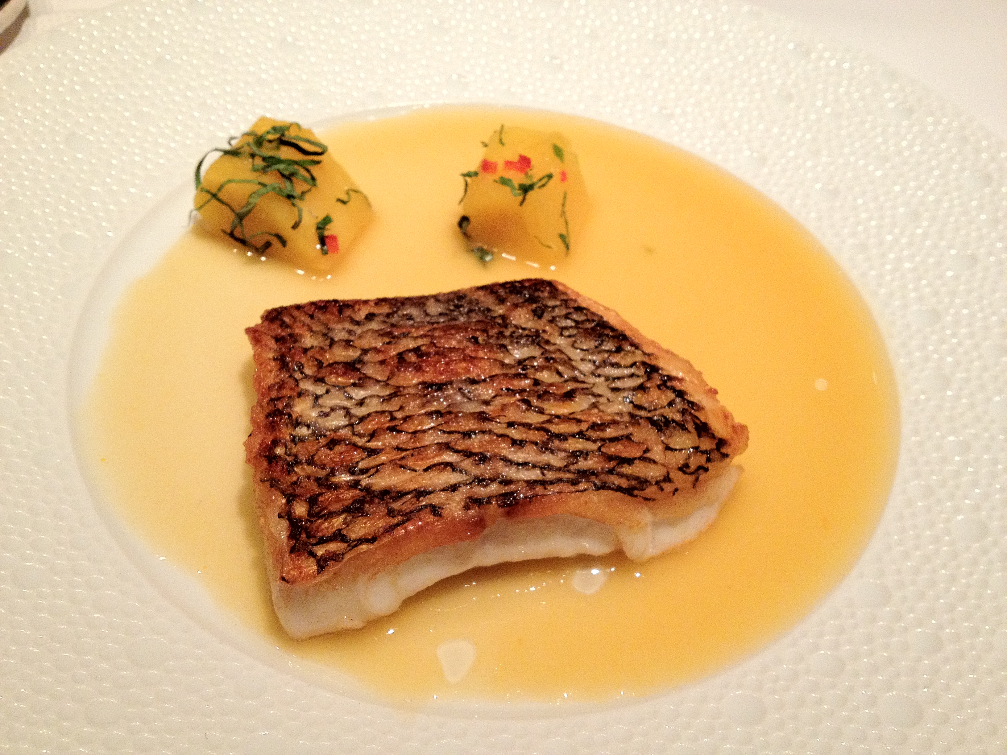 The server said that they didn’t have any arctic char available and that they decided to replace it with the black bass course. Unfortunately, the shishitos that were supposed to be in the course weren’t up to the restaurant’s standards, so they just decided to serve the bass without the shishitos. I think the restaurant have replaced the shishitos with something…