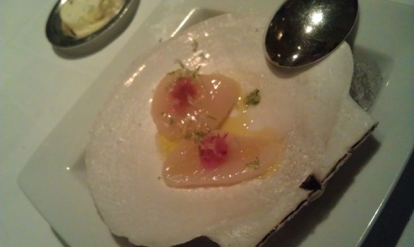 Victor: I forgot the details of this course :(. It’s also hard to find the description online because nearly all the Jean Georges scallop pictures are of the “scallops with caramelized cauliflower and raisin-caper emulsion” dish. That dish IS pretty amazing, but I want to know about THIS one :(.