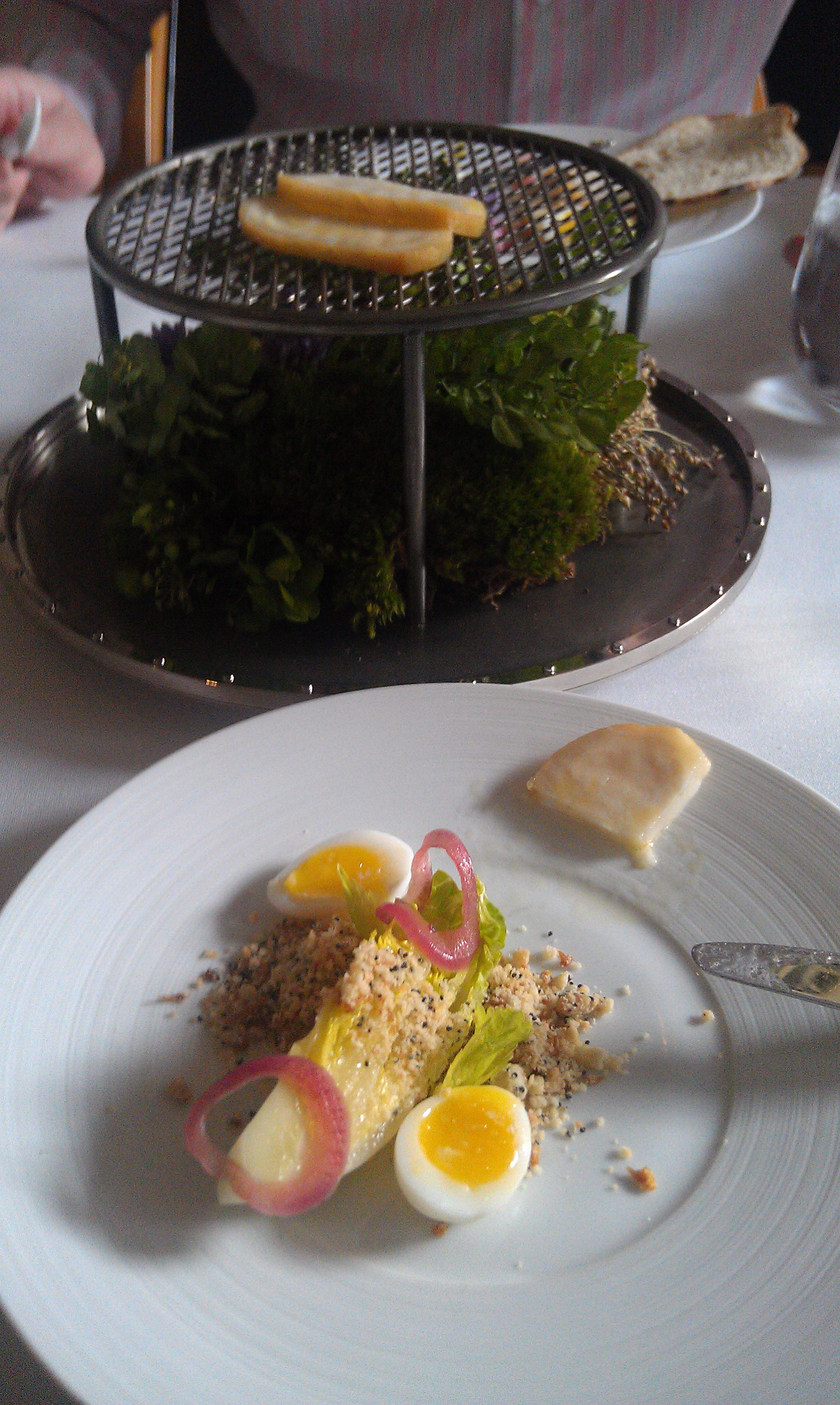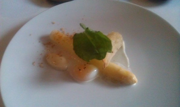 Monte: I love white asparagus and find it always sweeter and more tender than its green cousin. Huzzah for another quail egg cameo.