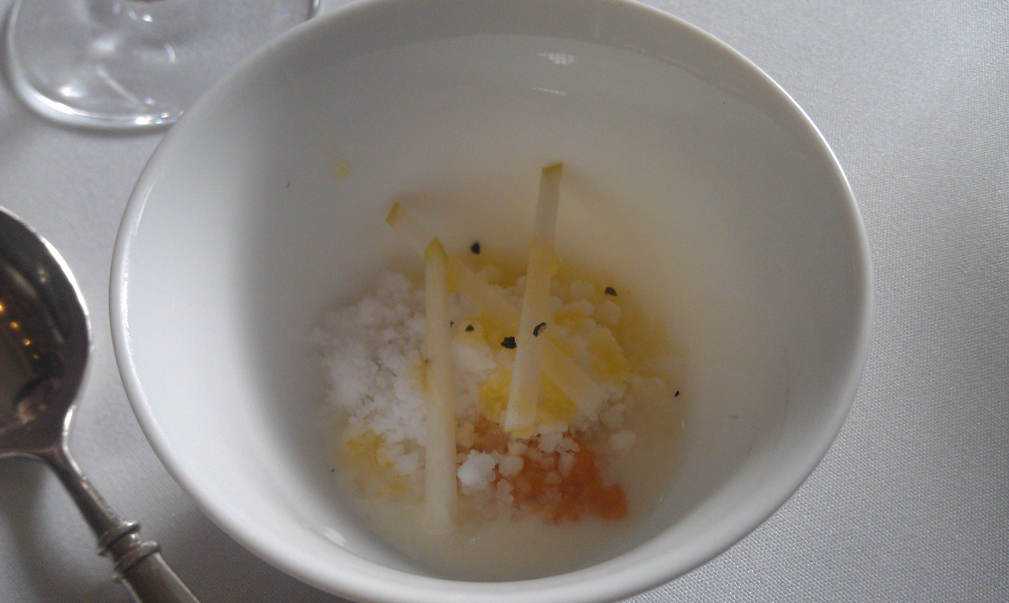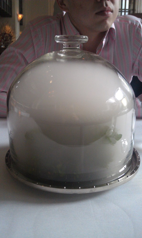 Monte: The dom tasted exquisite. I can’t really describe the fresh fruity notes coming from that champagne. The apple tea was strangely savory, slightly salty and herbacious (rosemary? thyme?) with the undercurrent of apple throughout. It’s cool.