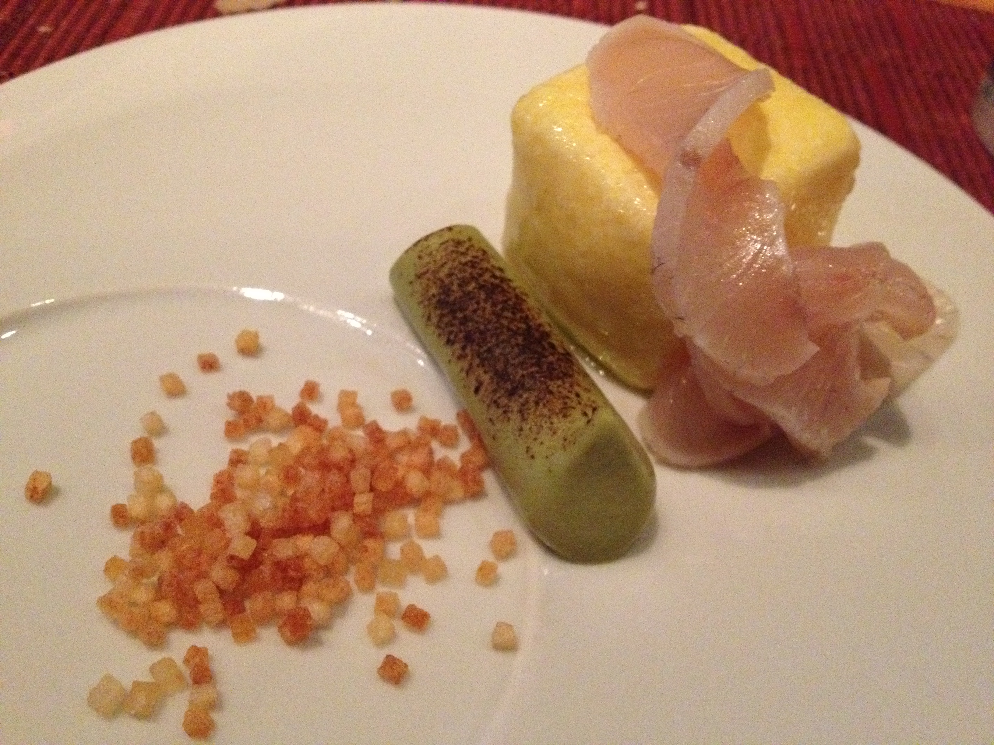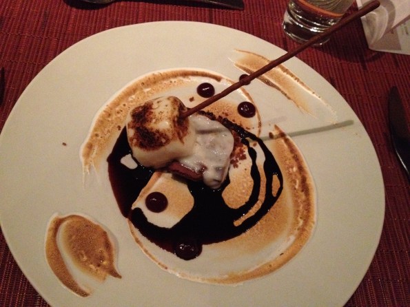 Monte: This was a great play on s’mores. The marshmallow is actually a meringue ice cream and the stick holding it was edible too! It’s really playful, and was certainly better tasting than anything I’ve ever eaten by the campfire.