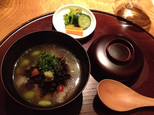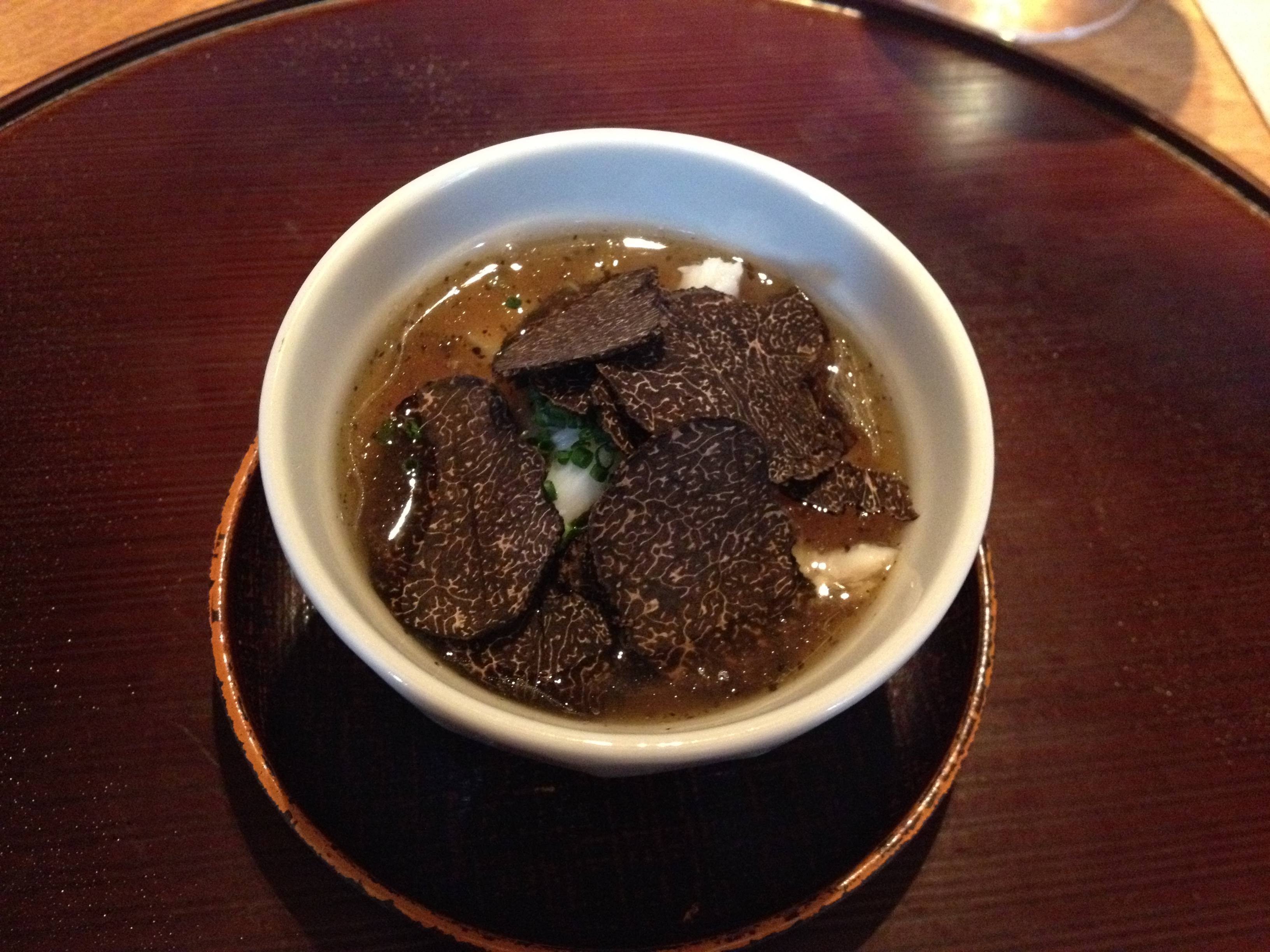 Monte: After the first chrysanthemum tea and chilled vegetables, this truffled chawanmushi tasted like a heavy hitter. That’s just in contrast to the prior dishes though – after my taste buds adjusted, I found this dish to be very well-balanced and I liked the sweet crab meat.