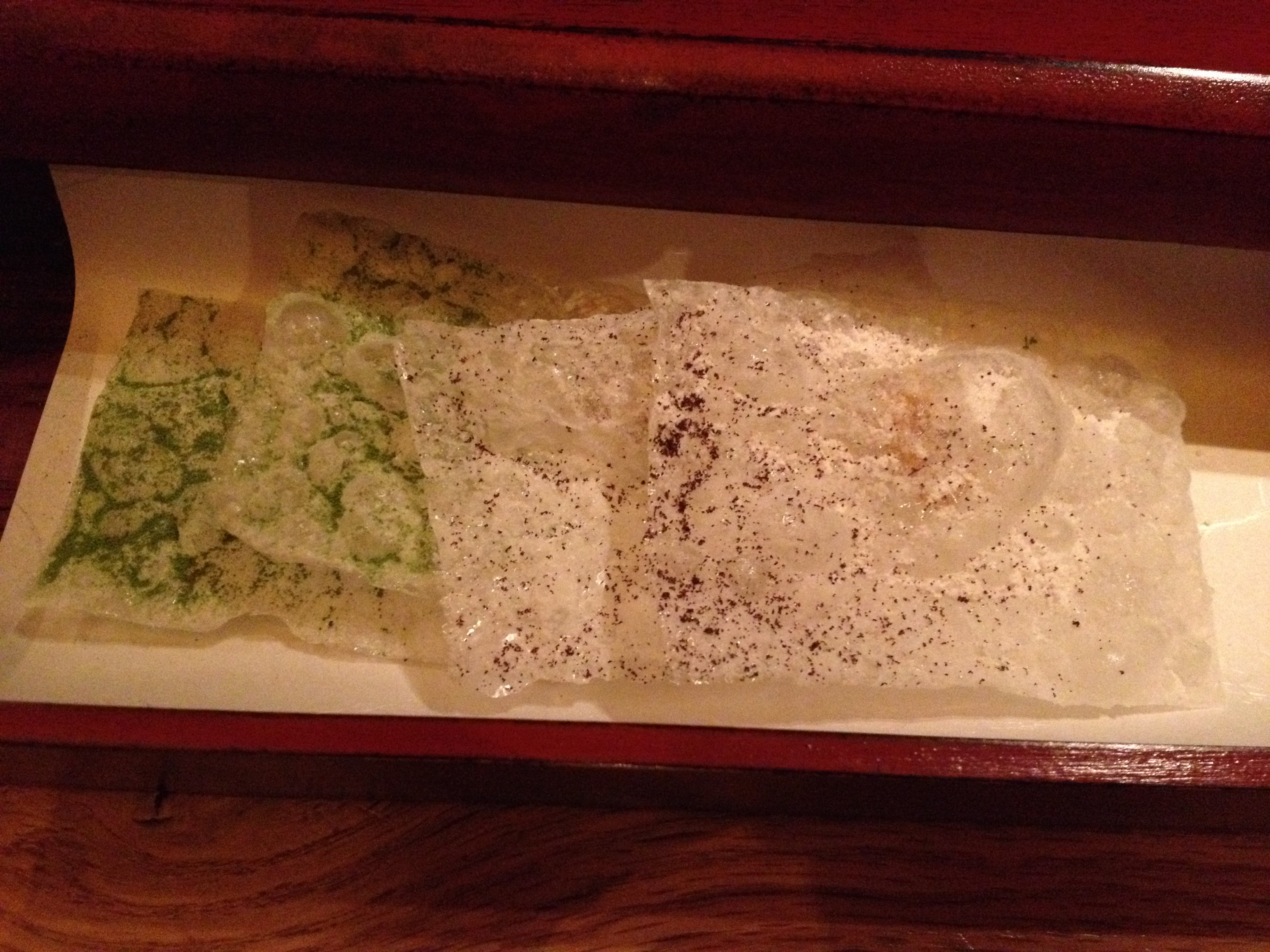 Monte: The rice crackers were a great way to end the meal and just munch while reflecting on the great meal. They were almost gummy once you bit into it, which was a fun surprise. This was only my second kaiseki meal, so I don’t have as much of a reference as to how it compares to other experiences, but I personally thought it was really good.