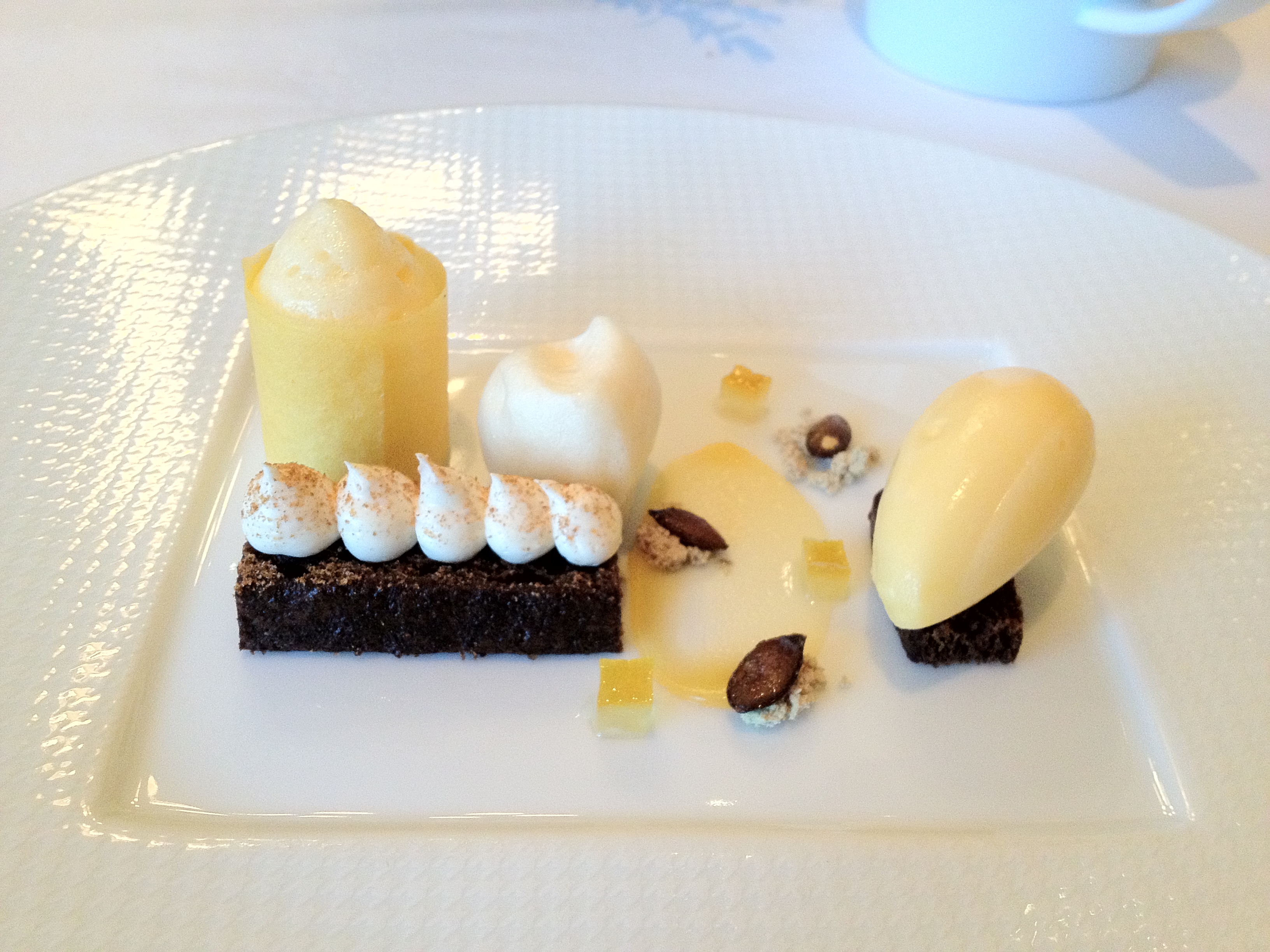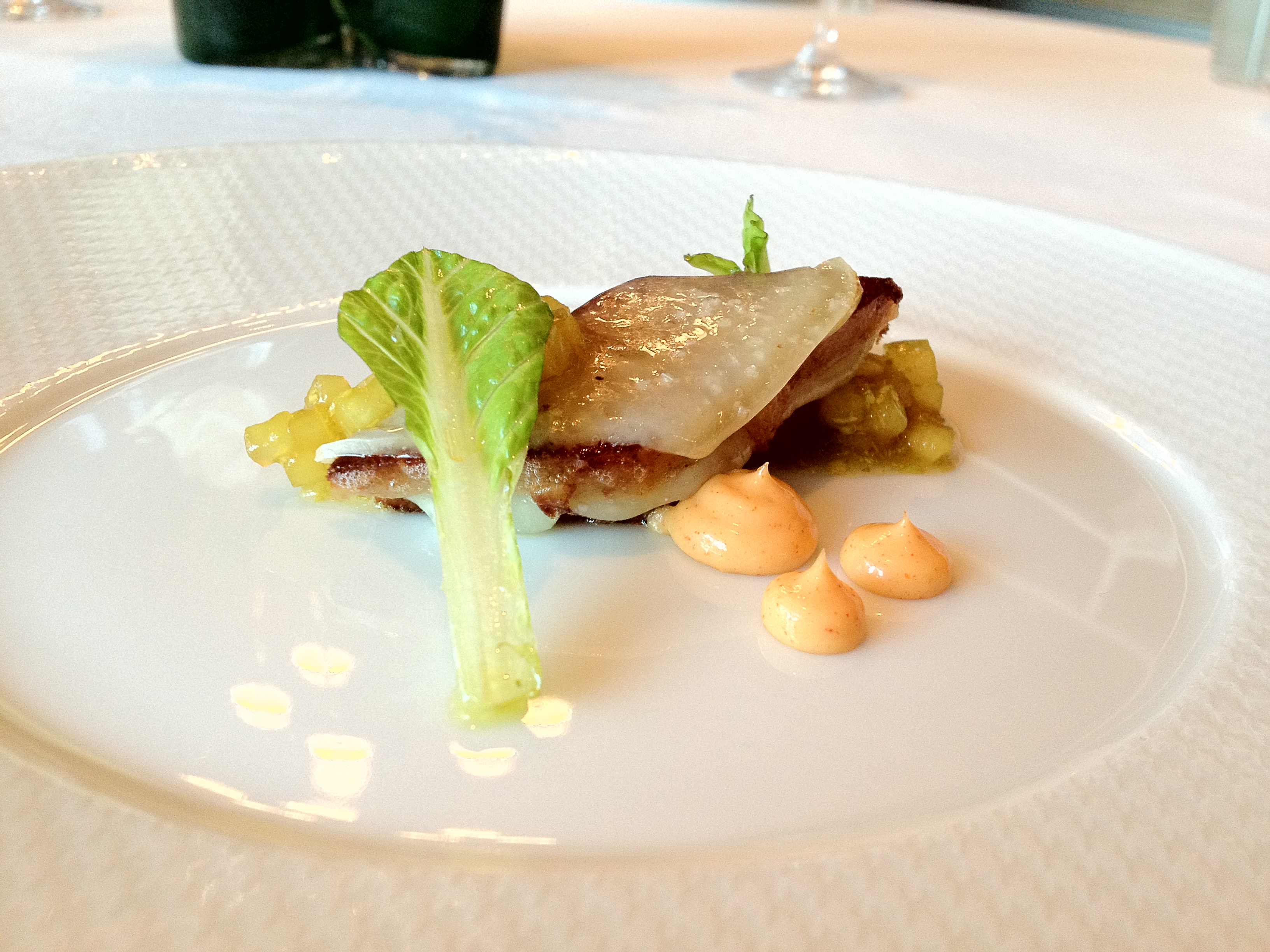 This dish had a lot of fall flavors. The salsify potage and madeira-chestnut mousseline meshed together really well, and the raisins and celery added a few more welcome elements to the dish, which was really light (though that might be because it was a small portion?) and provided a nice start to the meal.