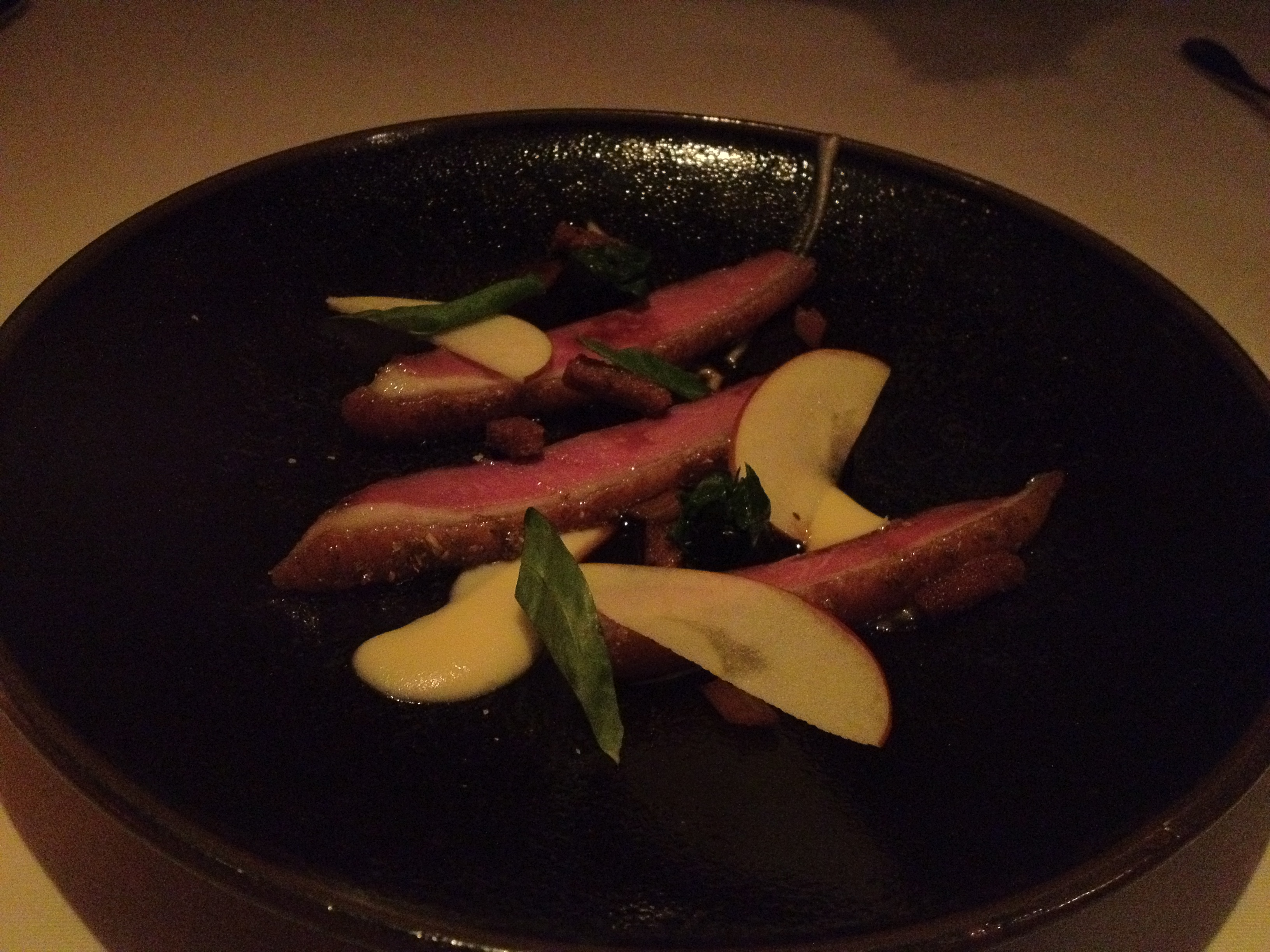 Monte: Venison + foie + squash = rich autumn amazingness. The meat wasn’t too gamey (this one was less gamey than lamb, in my opinion), and I loved the pairing with the other ingredients.