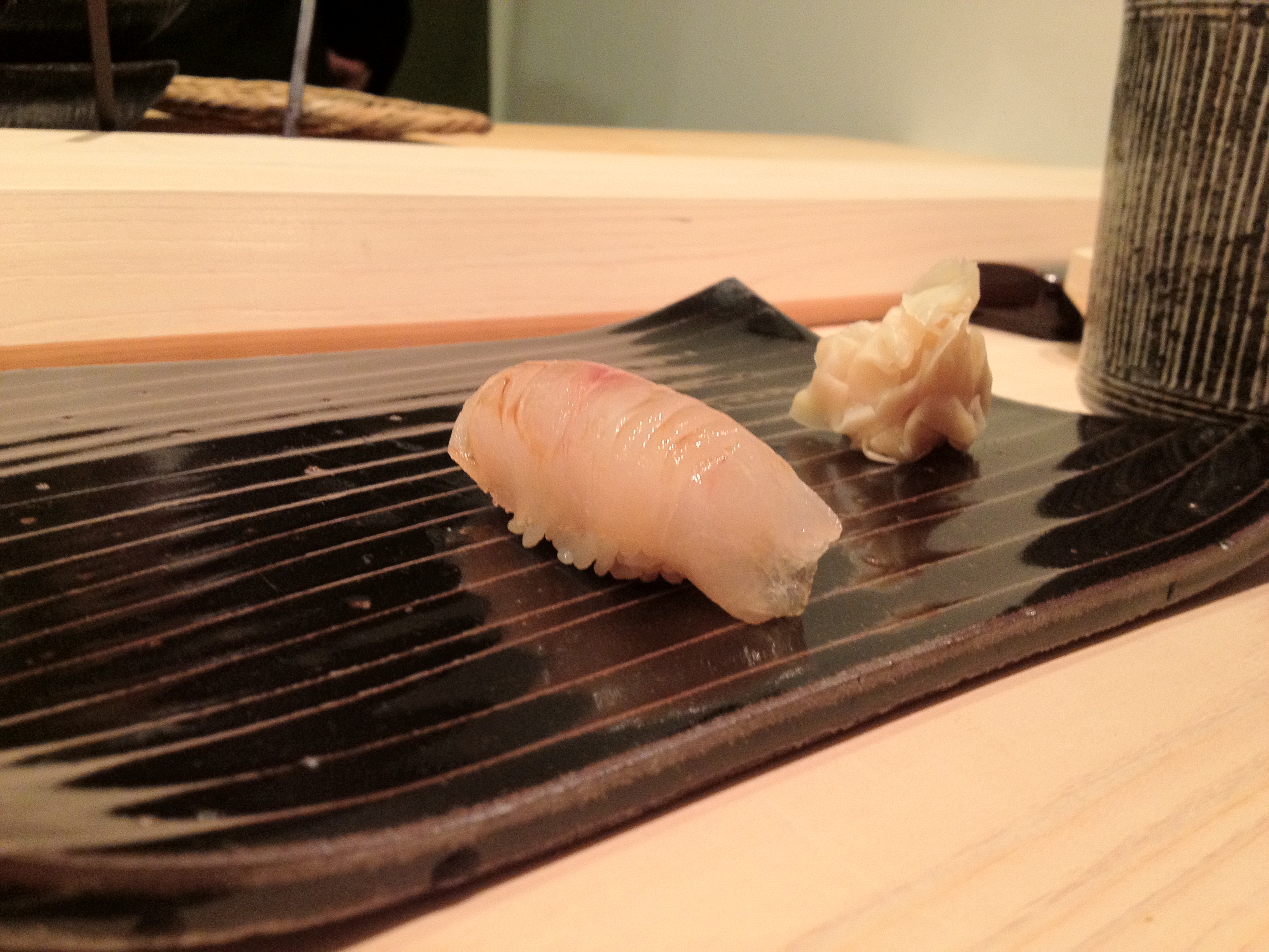Kinmedai (golden eye snapper) from Shizuoka (I think?) with soy-based sauce made from the snapper’s bone.