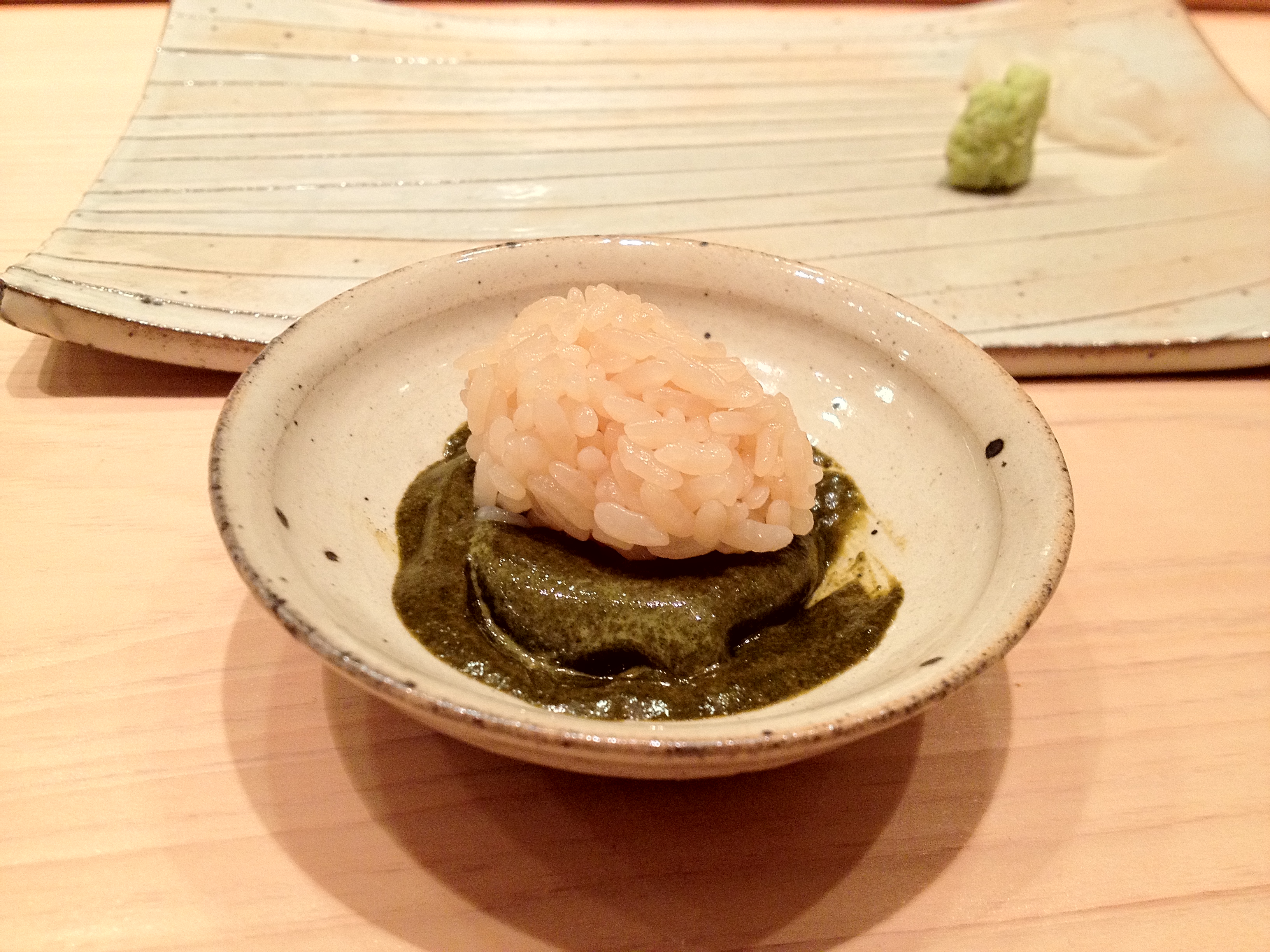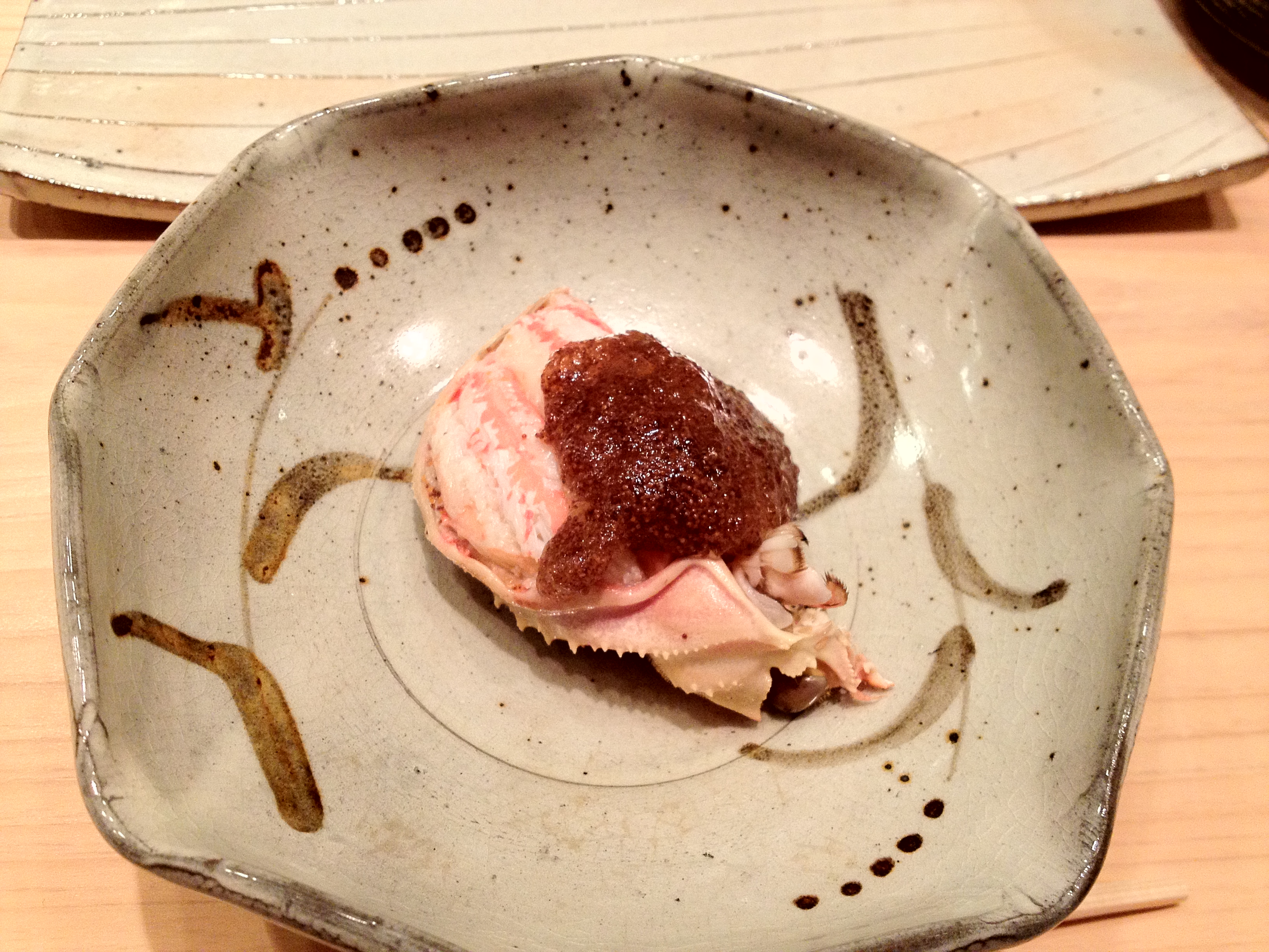 This is one of Chef Yoshitake’s famous dishes. The abalone was already amazing, but the sauce was an extra level above amazing. Transcendent? It was intensely flavorful both with the abalone and with the sushi rice! I usually don’t finish sauces completely, but I had to in this case. There simply was no other choice. This was one of my two favorite dishes of the evening.