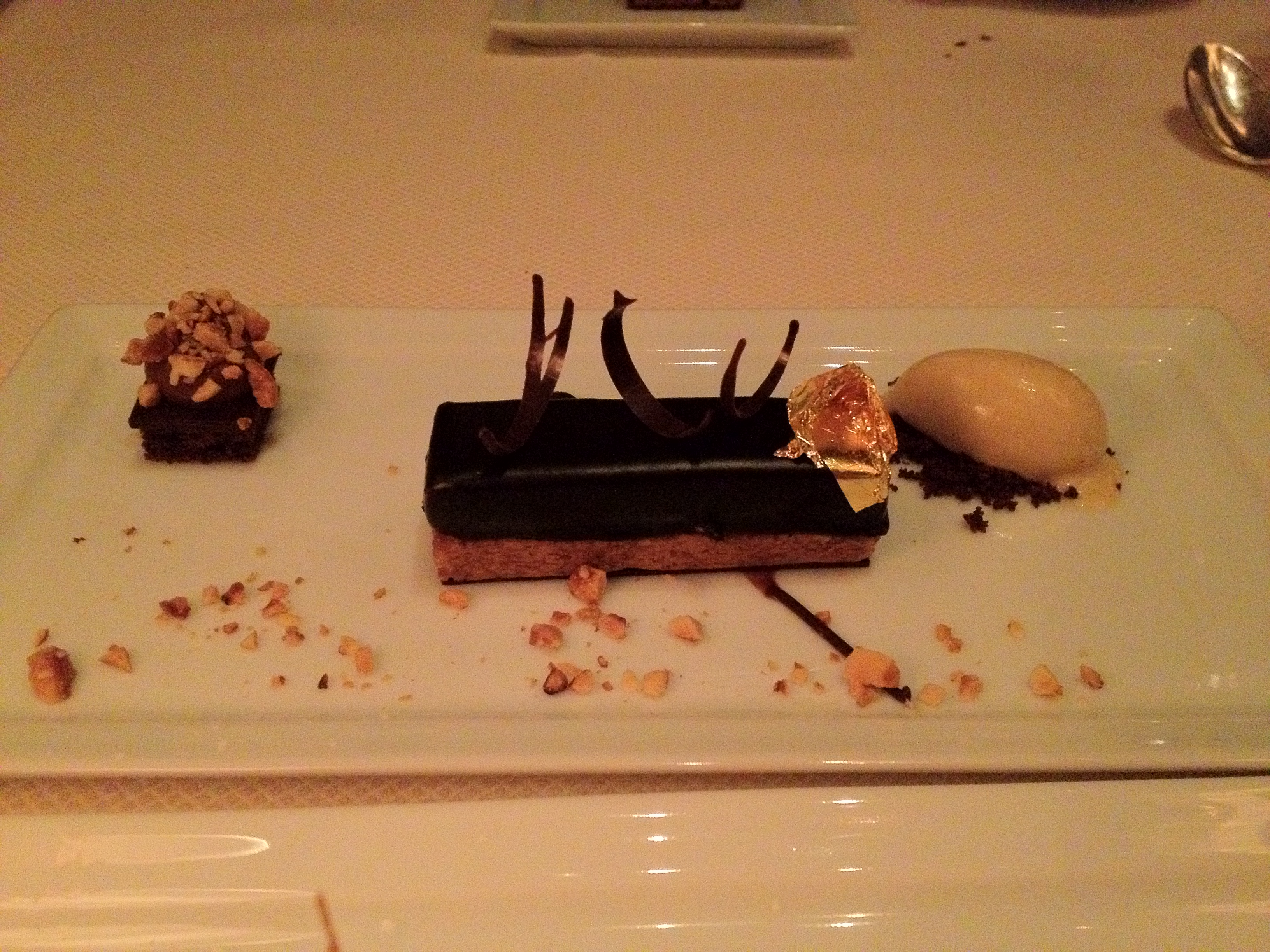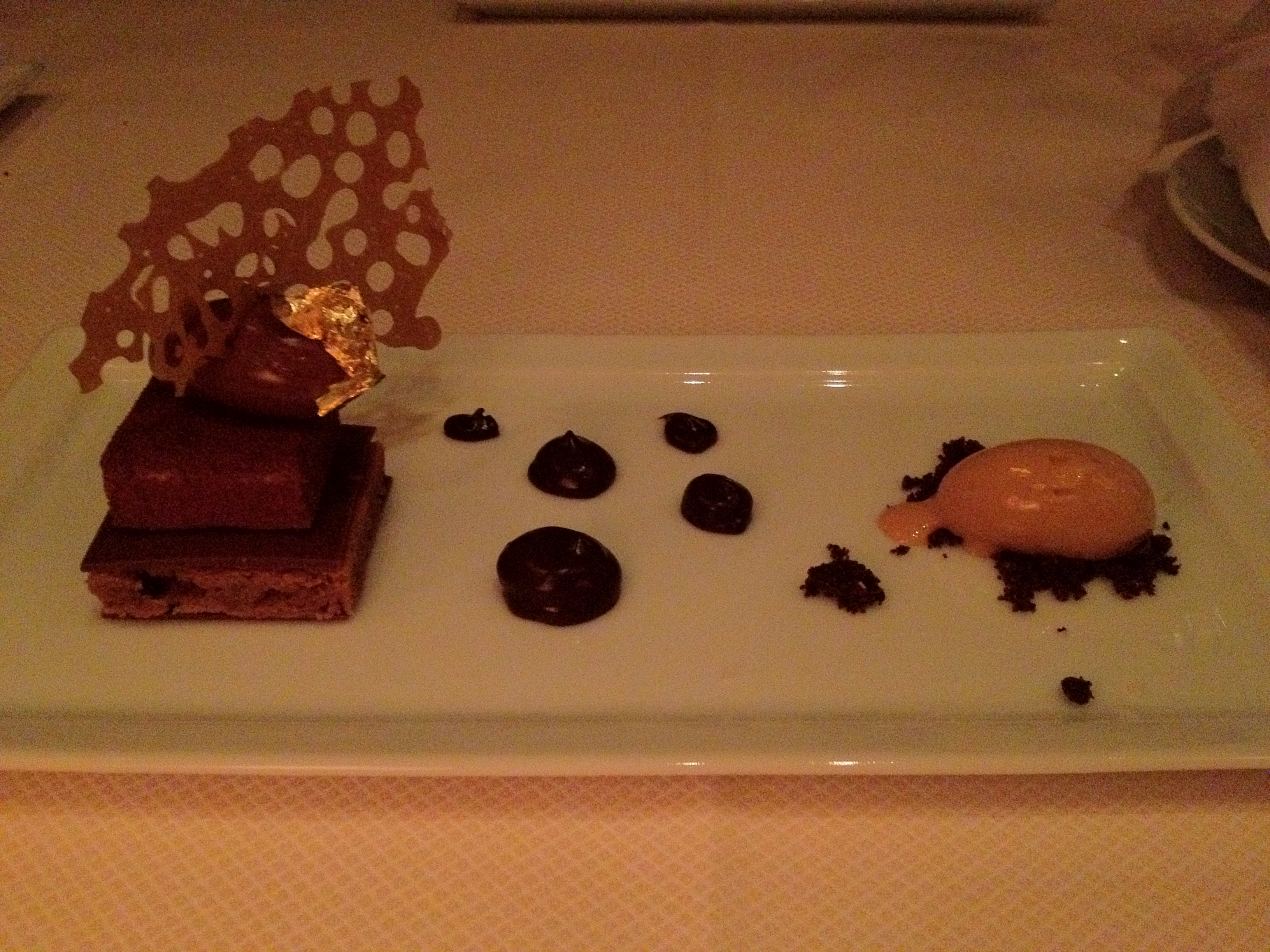 Tad: The coffee chocolate I got were excellent. And I personally like gold in my dessert. It makes the presentation sparkle just a little more. Although, I would like to take this opportunity to quote one of our friends who refers to gold in food as “reverse alchemy.” To paraphrase: “In ancient times, alchemists try to turn crap into gold. When you put gold in food, you are literally doing the exact opposite.”