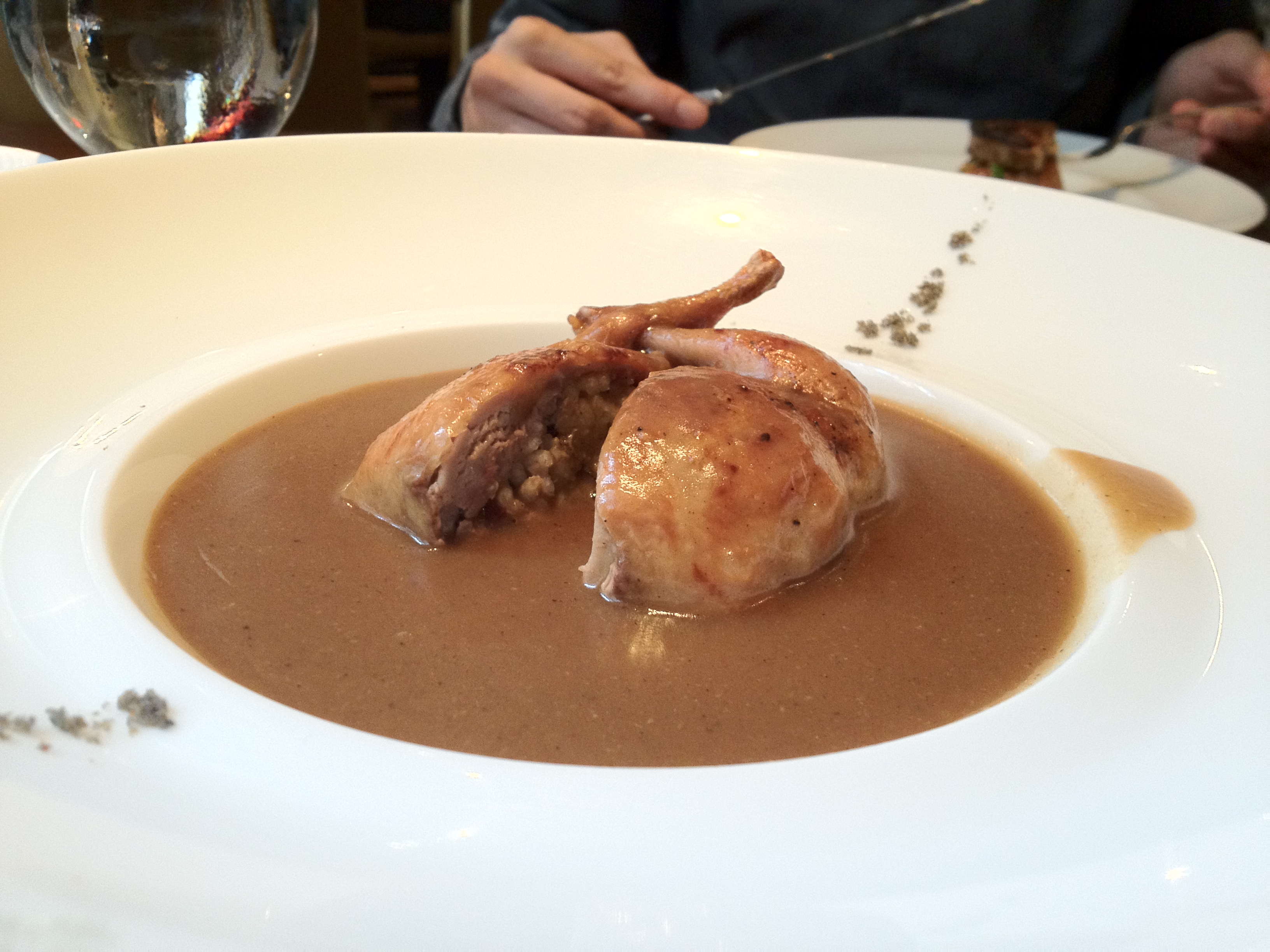 Middle: Boudin-stuffed, deboned, and served with quail jus