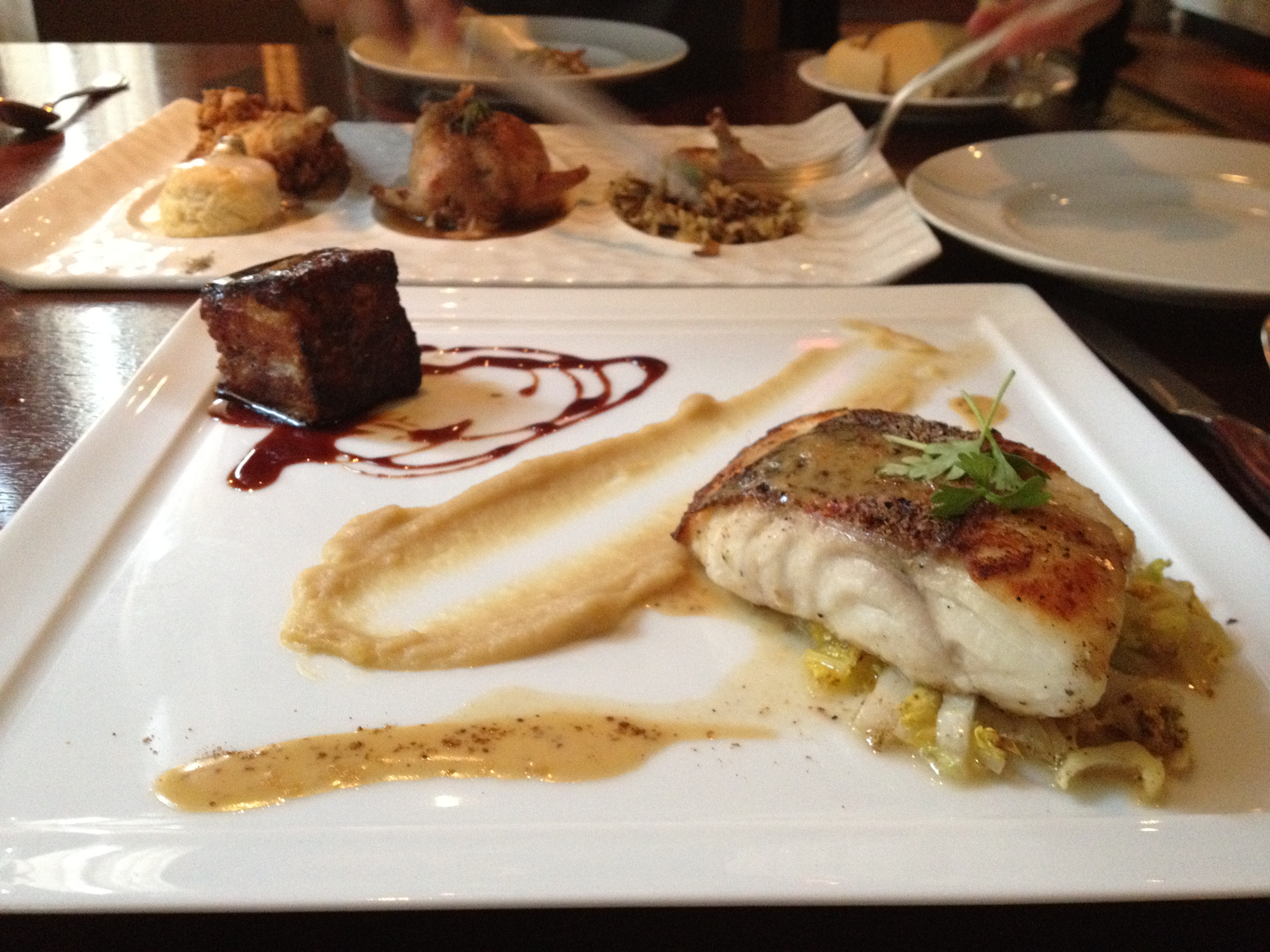 Monte: I thought the snapper was well cooked, with a subtle but pleasant mustard taste. I’ve never had mustard snapper before, so it was a pretty creative approach in my opinion. The pork belly was pretty decent, although it had cooled considerably by the time I dug my fork into it. The combination between the pork and snapper didn’t wow me in the same way that other critics had crowed about, but I thought it was good.