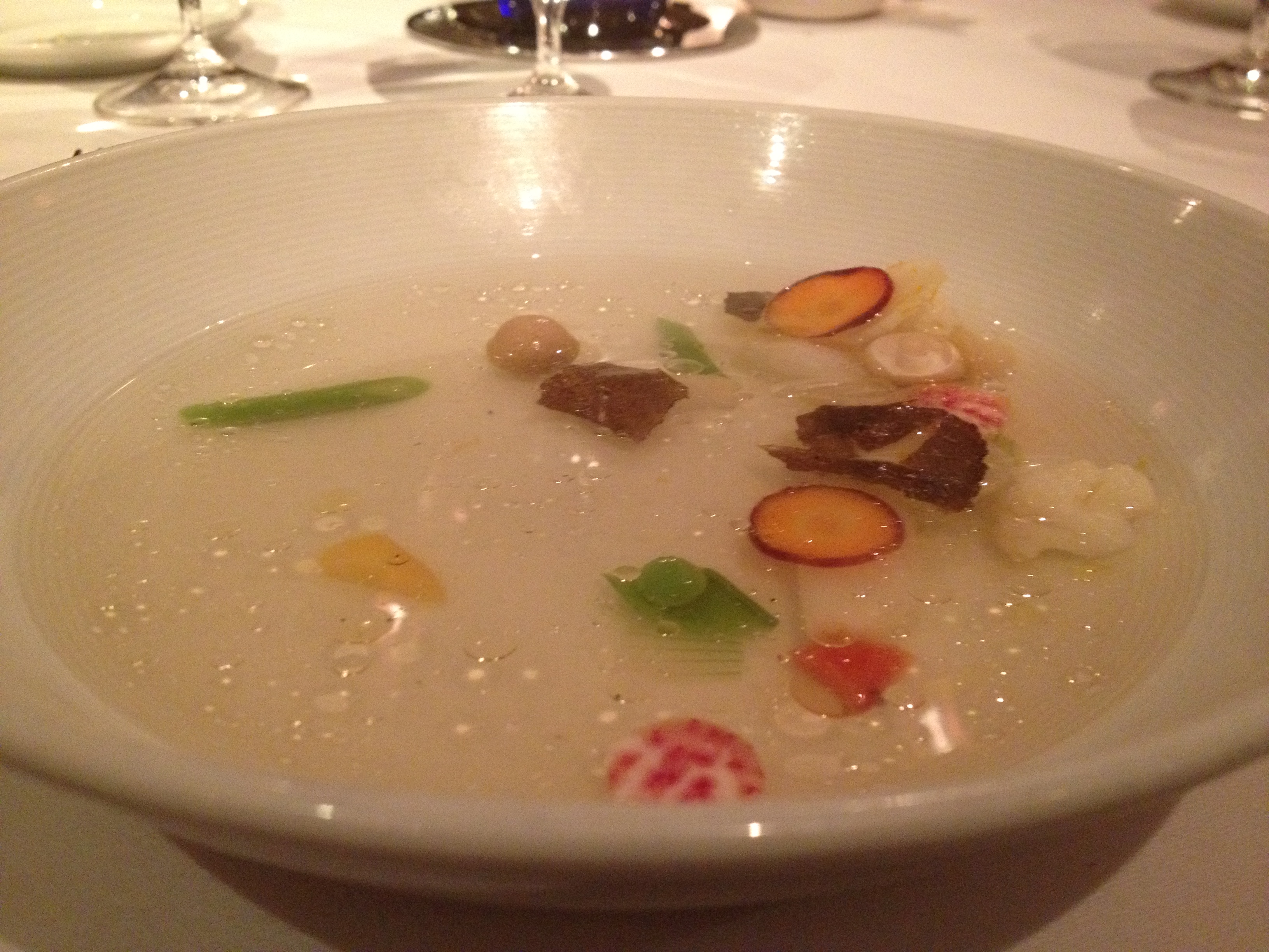 Victor: My cousin enjoyed both the spring bouquet of vegetables and the consommé a lot… by themselves. She didn’t really think that the spring bouquet and consommé were perfectly made for each other, though. According to her, it felt like they decided to prepare the consommé and then add the spring bouquet in. Also, she felt that the black truffle was completely unnecessary to the dish and was there for really no good reason.