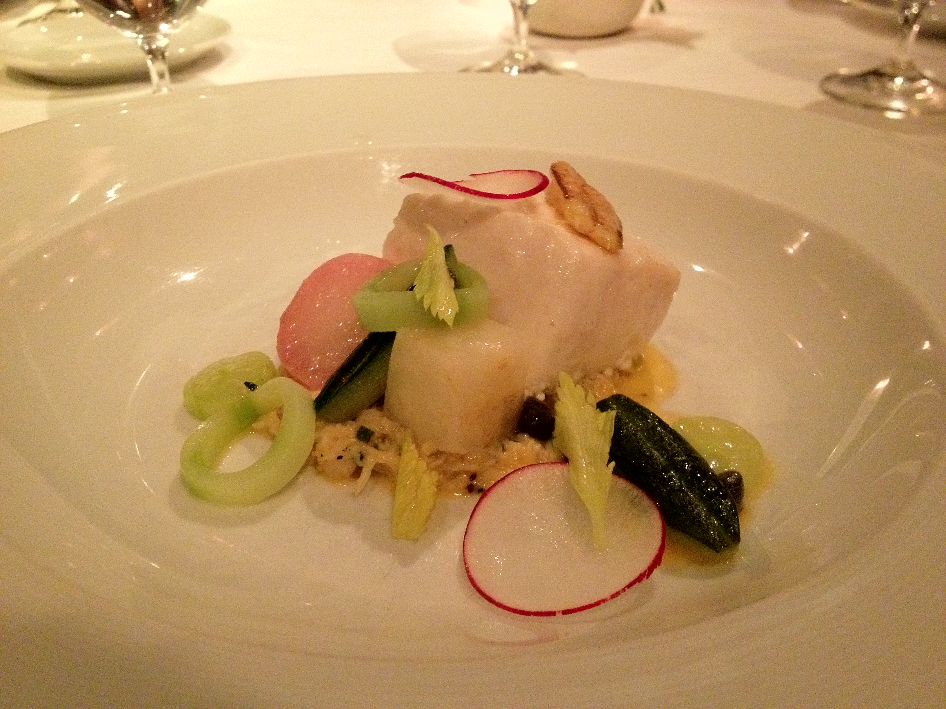 Monte: Hurraaah a fanfreakingtastic dish. The salty sweet crab and flaky buttery halibut was amazingly well-balanced and delicious. Using a small amount of crab to kick up a sauce is so creative and needs to be done more.