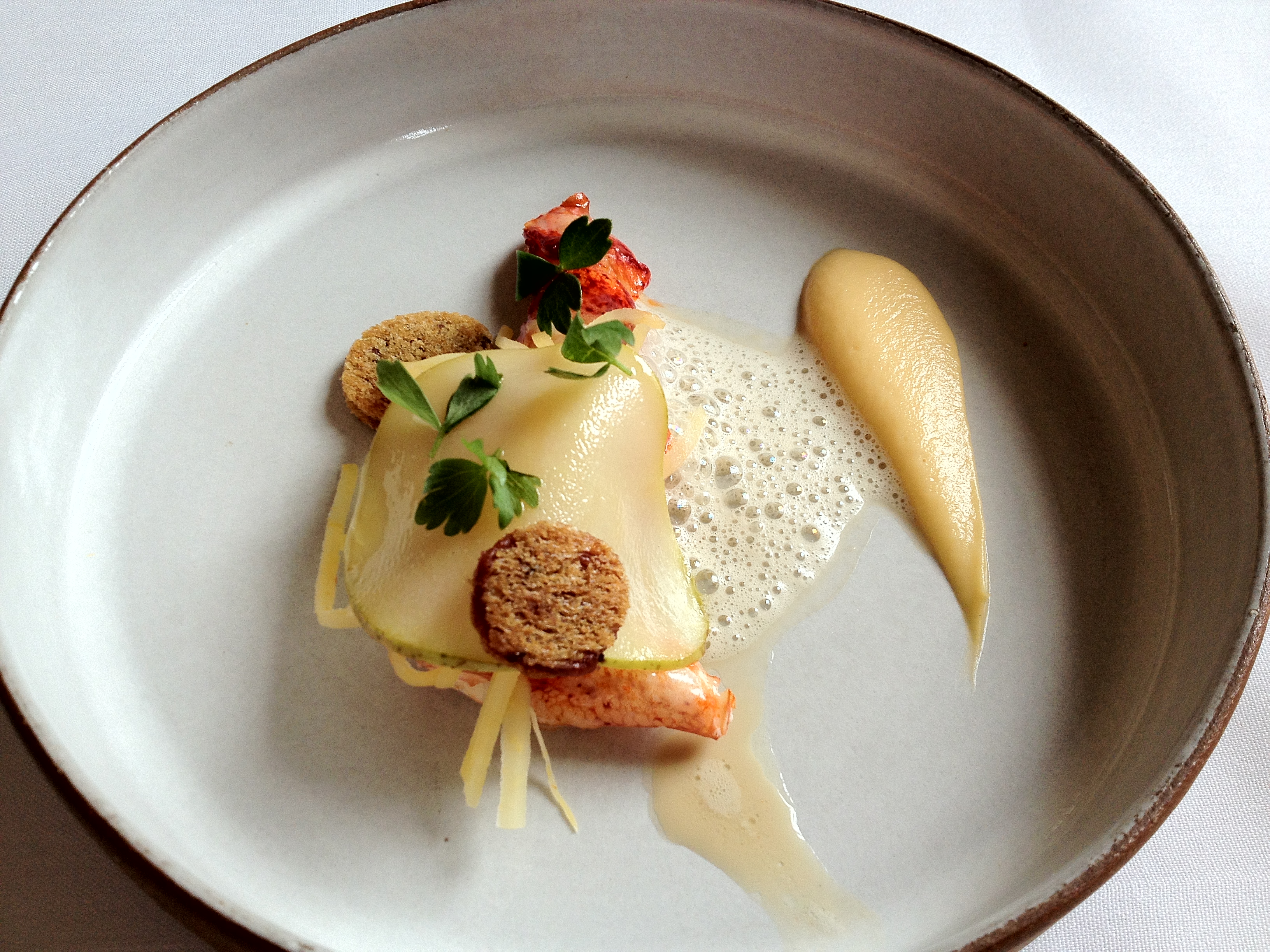 Monte: Hey hey, you sexay thang, can I hollatchu? More seafood, more love, more happy noms. The lobster was very well-cooked, and resulted in a sweet bite with very tender meat. The pear added some sweetness and sourness to the dish and was much appreciated.