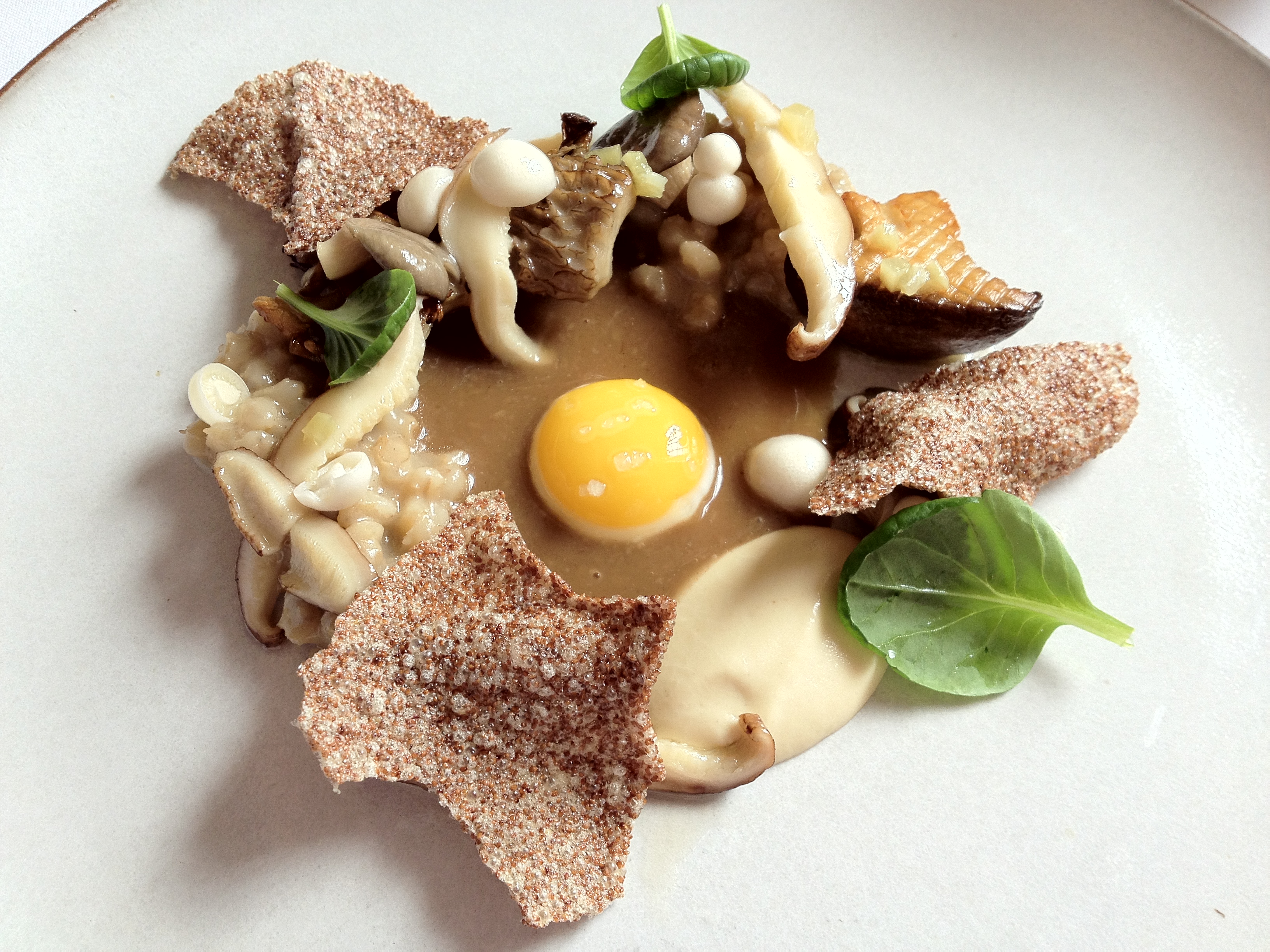 Part 2: Mushroom Sautéed with Teff Crisps, Pine Nuts, Garlic, and Quail Egg
