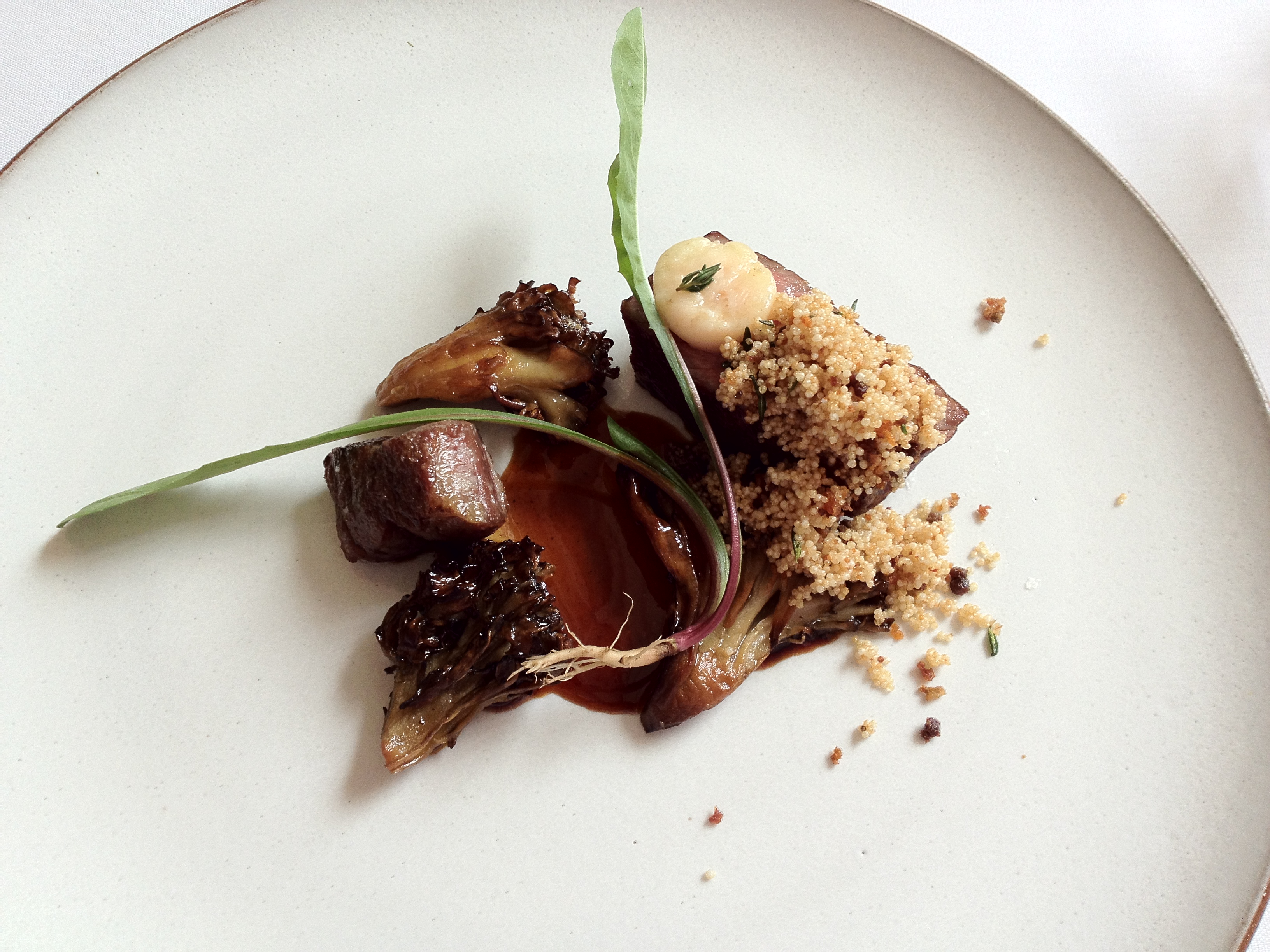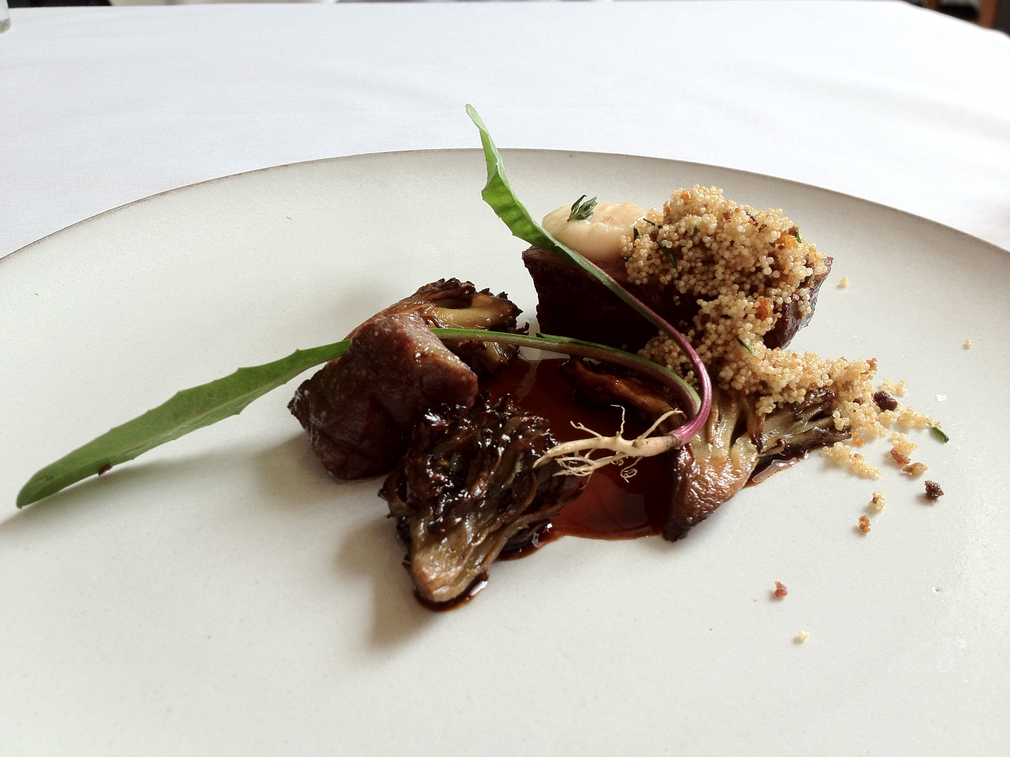 Monte: The beautiful pictures do the dish justice. The beef was perfect, with a crusty exterior and tender middle. The amaranth also added an unexpected crispy element.