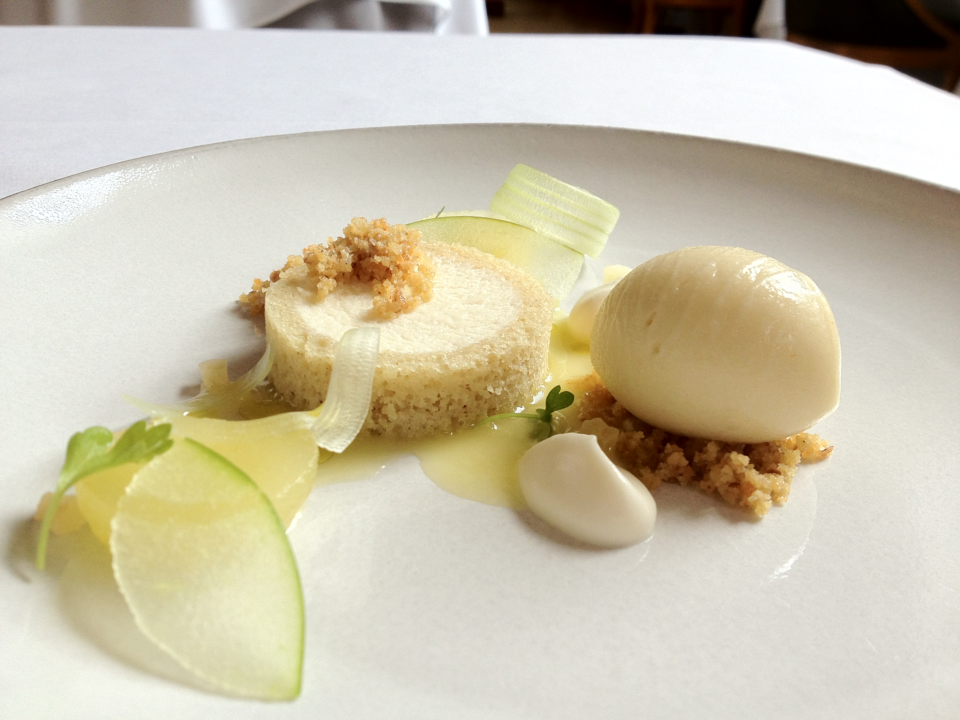 Custard with Apple, Scallop, and Chervil