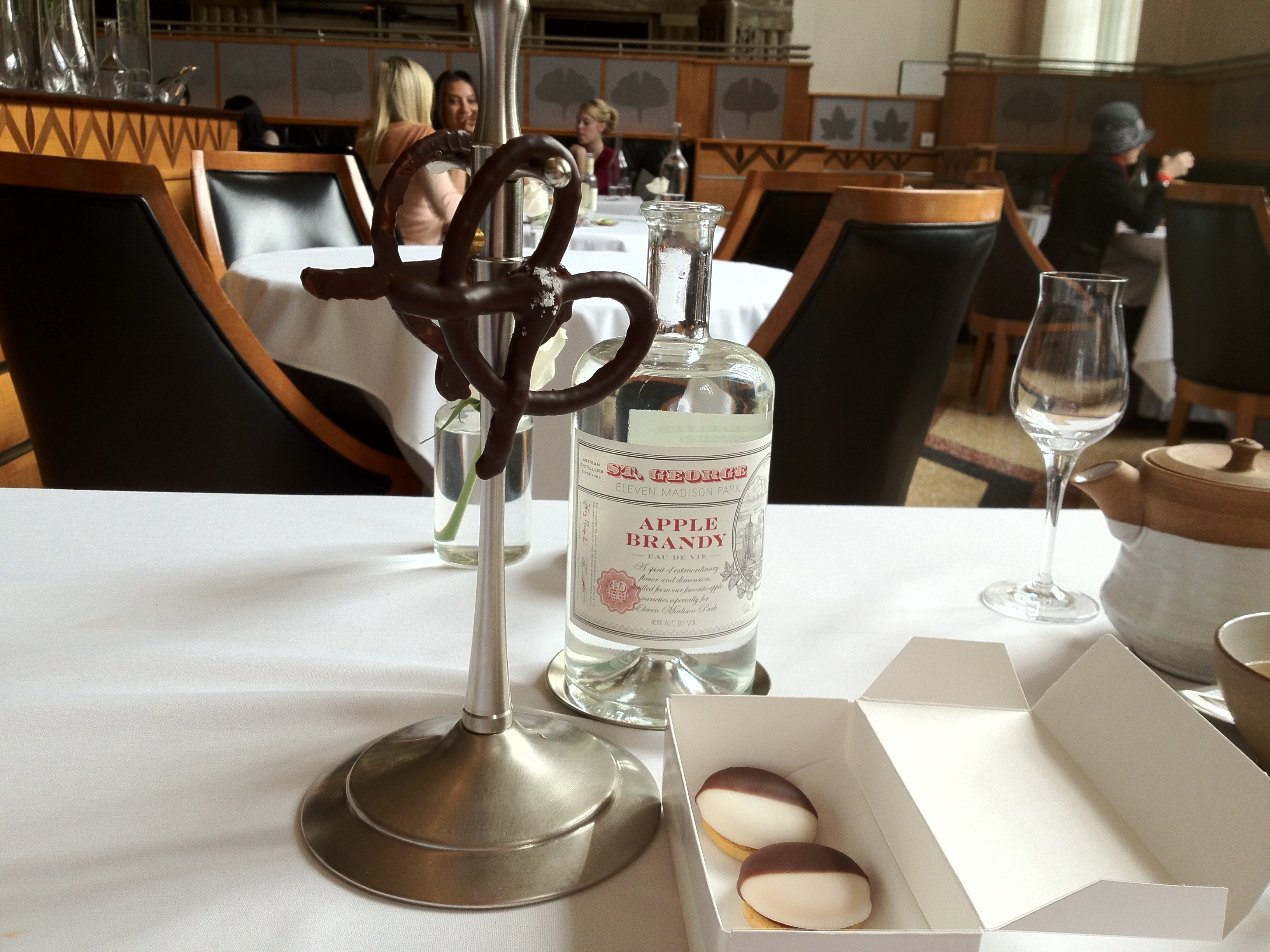 Victor: As usual, we finished the meal with some apple brandy, deliciously rich chocolate pretzels, and sweet black-and-white cookies!