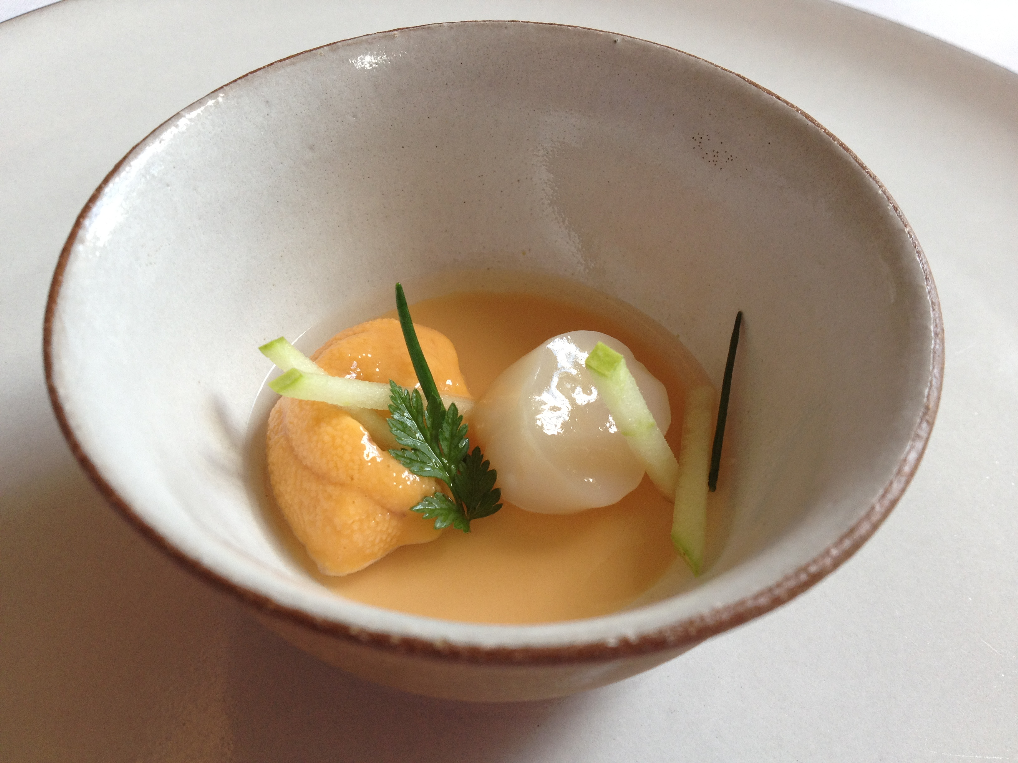 Monte: Oh baby, come to me. The custard is packed with sweet seafood flavor, and the uni and scallop were very tender.