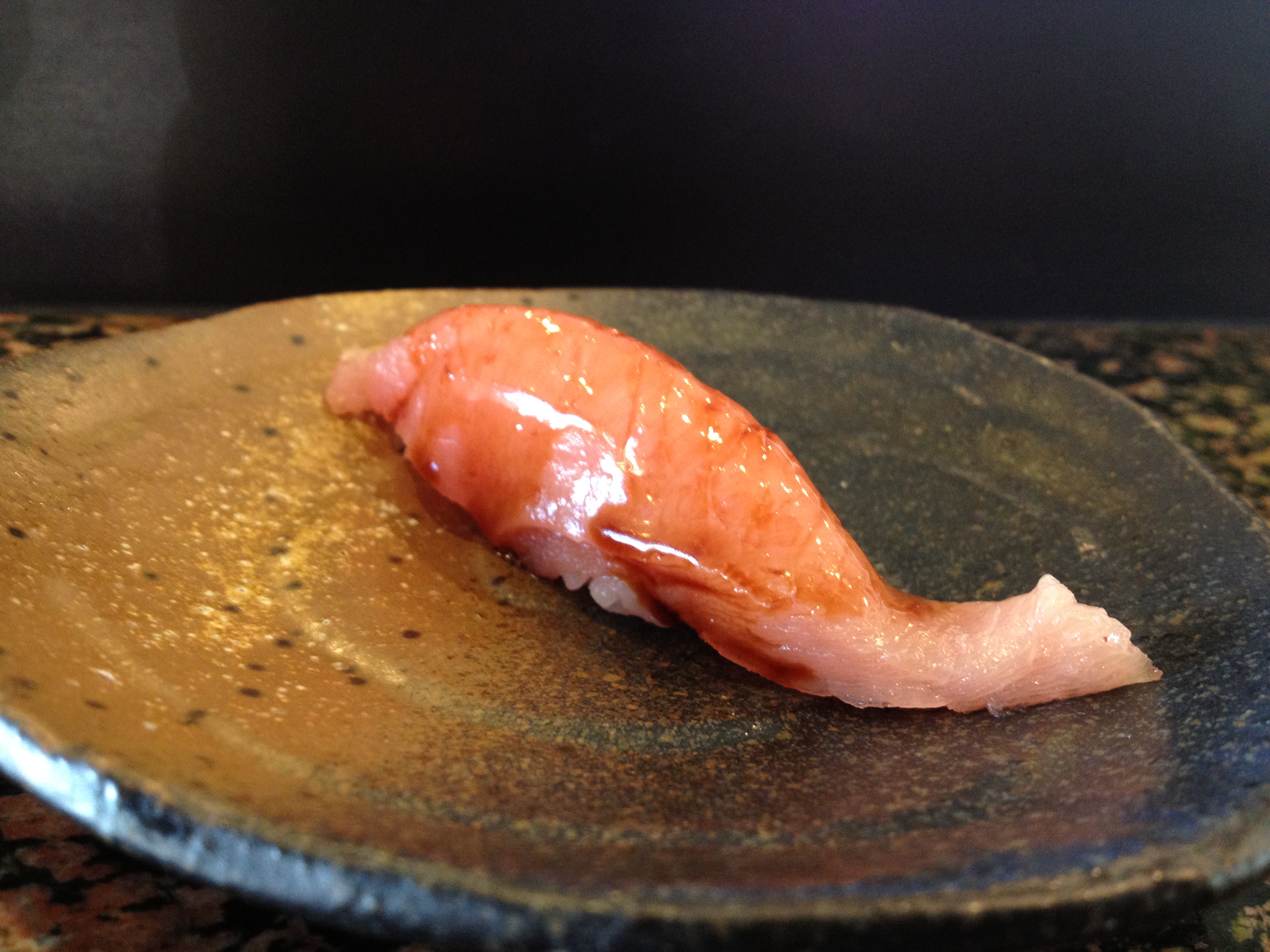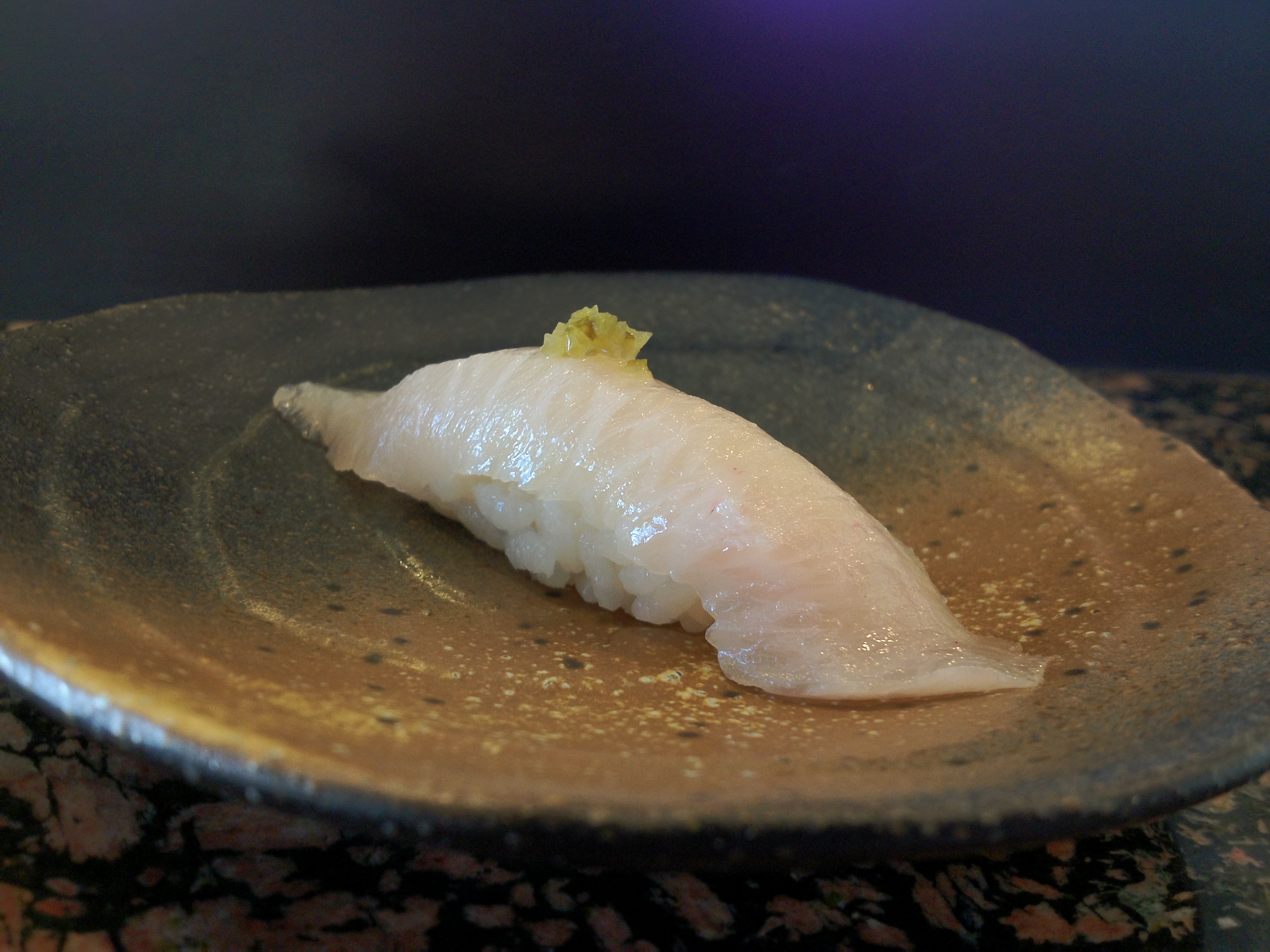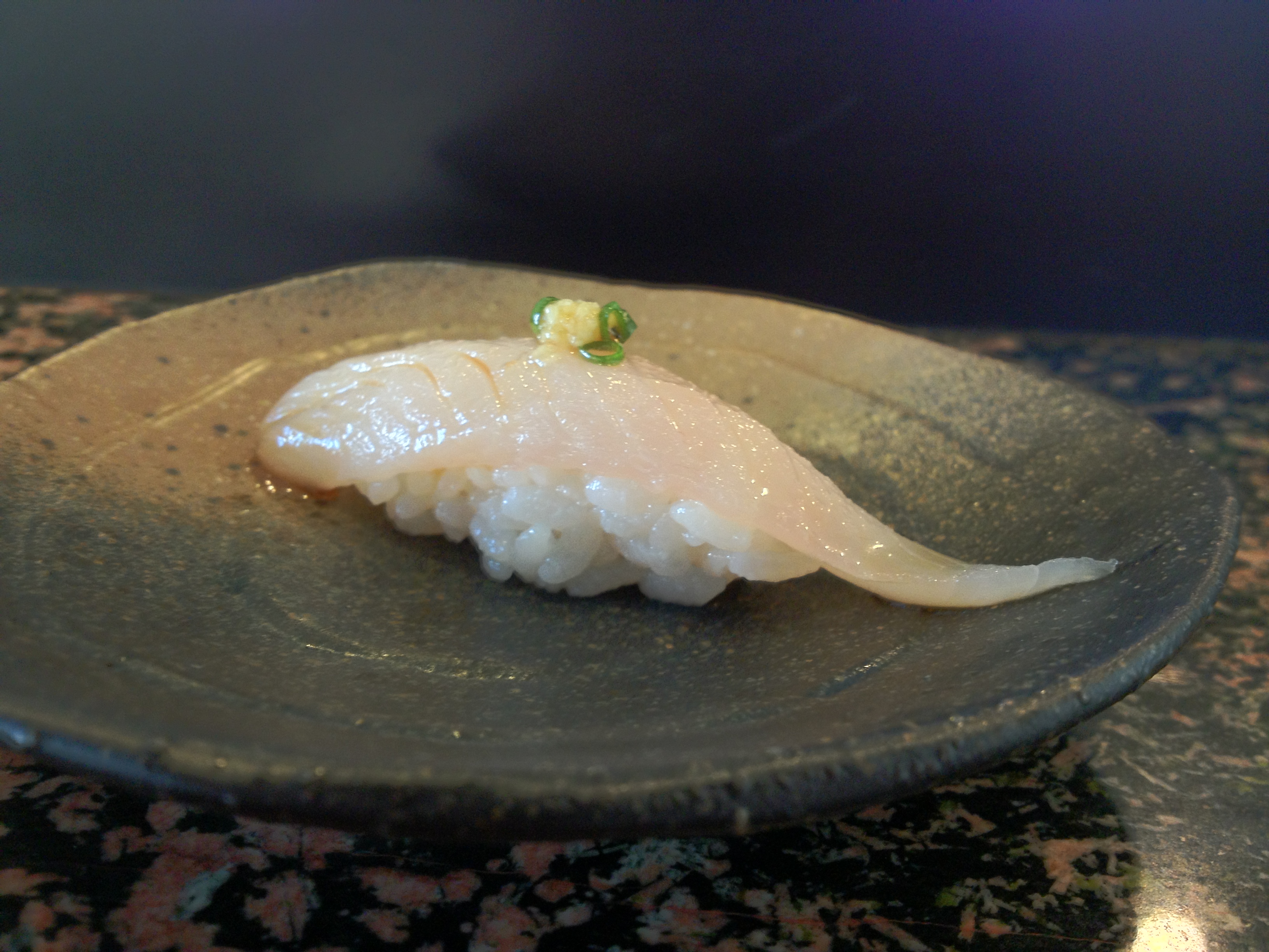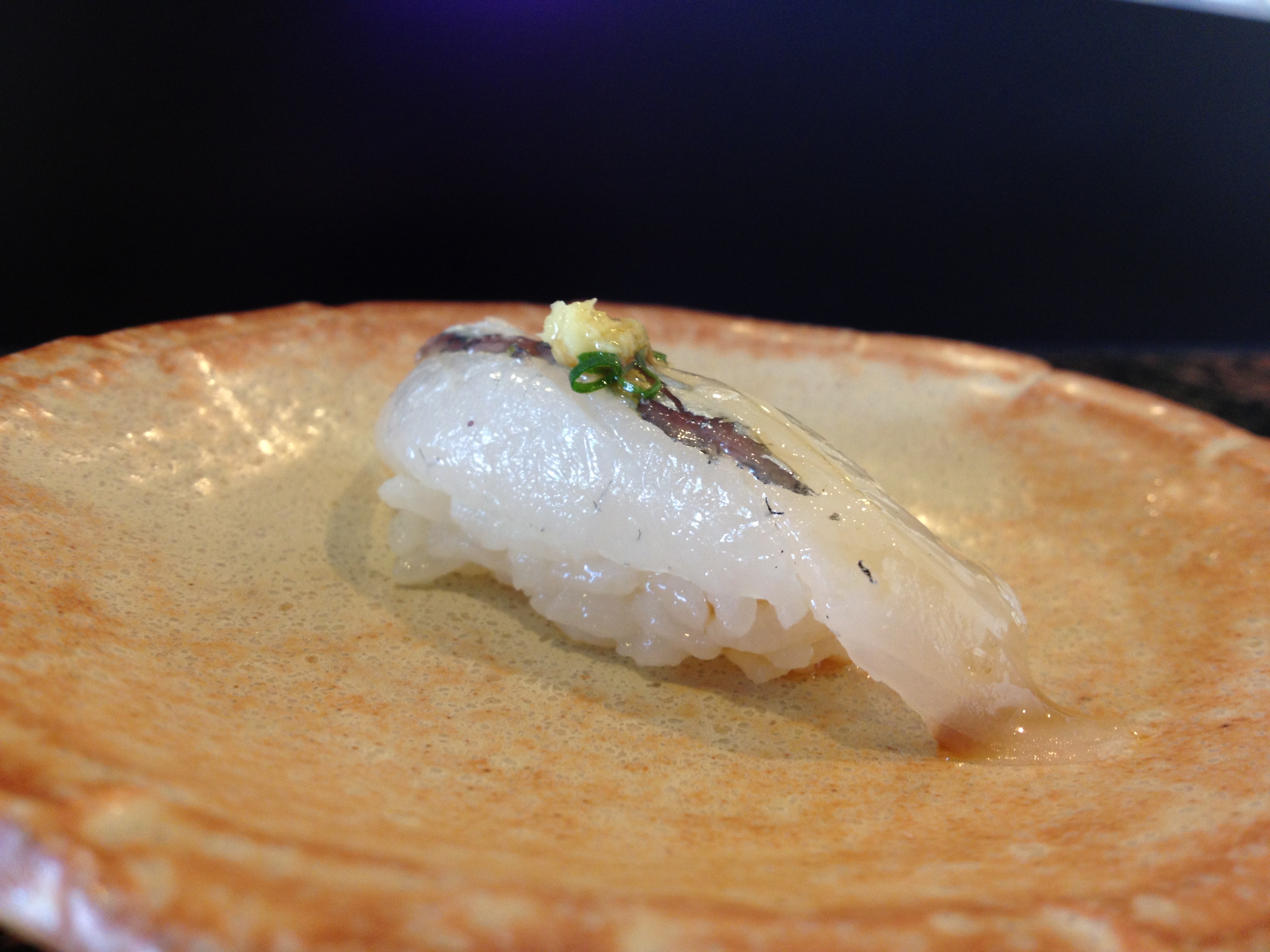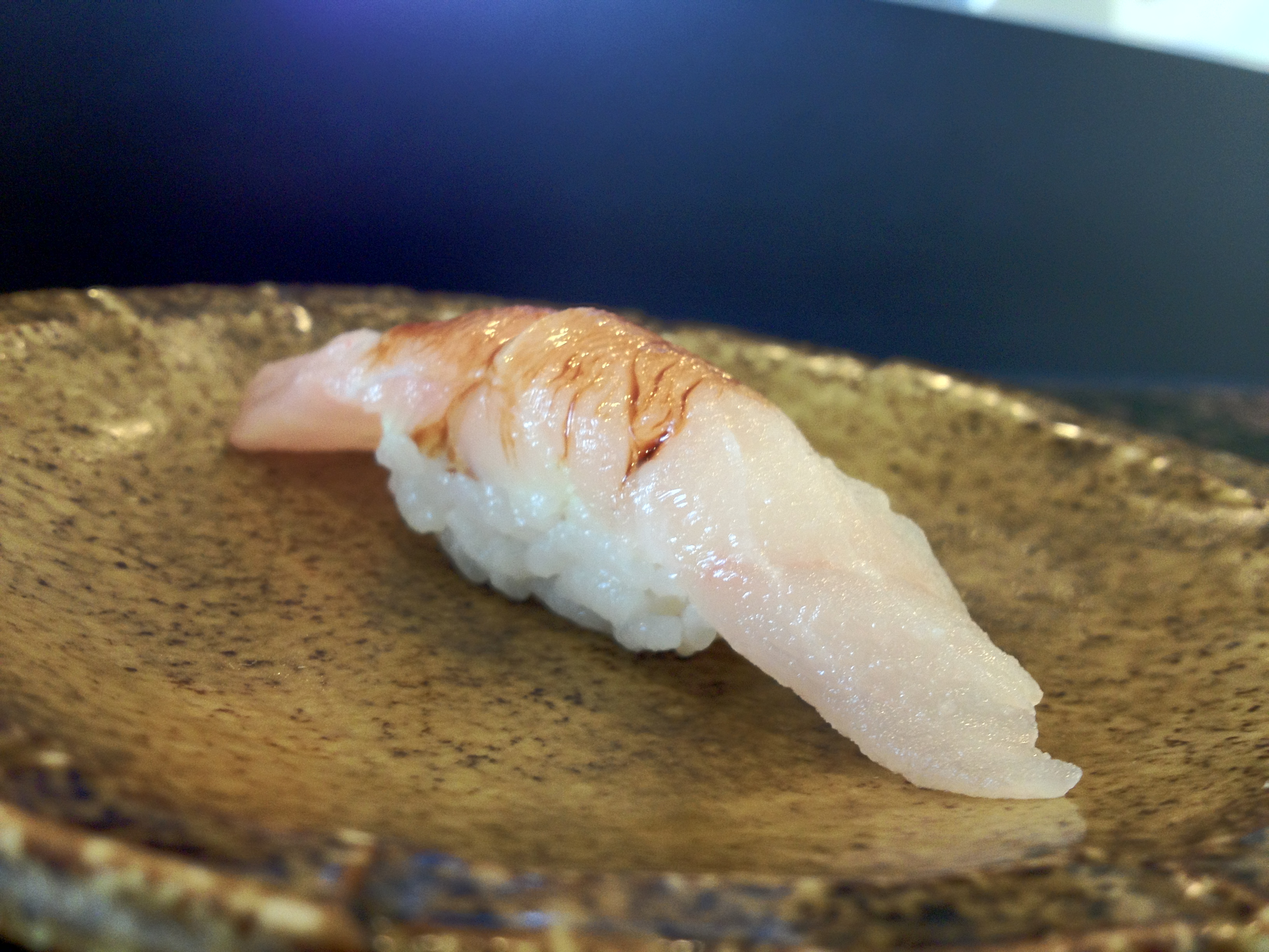 The abalone itself was average (in comparison to other awabi I’ve had at high-end sushi places), but adding the yuzukoshō made this a wonderful dish. It added dimensions of sweetness, sourness, and spiciness to the otherwise relatively one-dimensional taste of abalone.