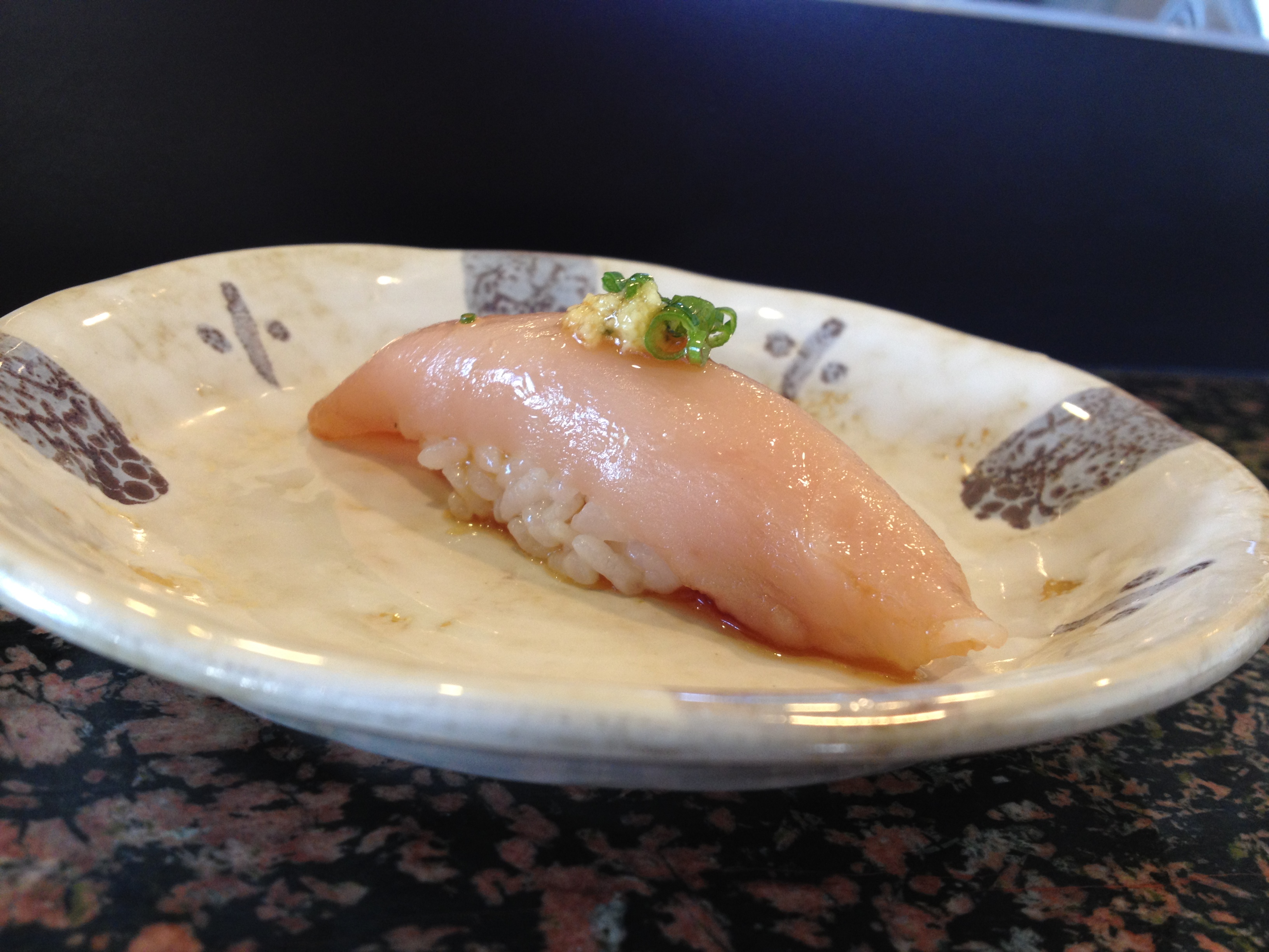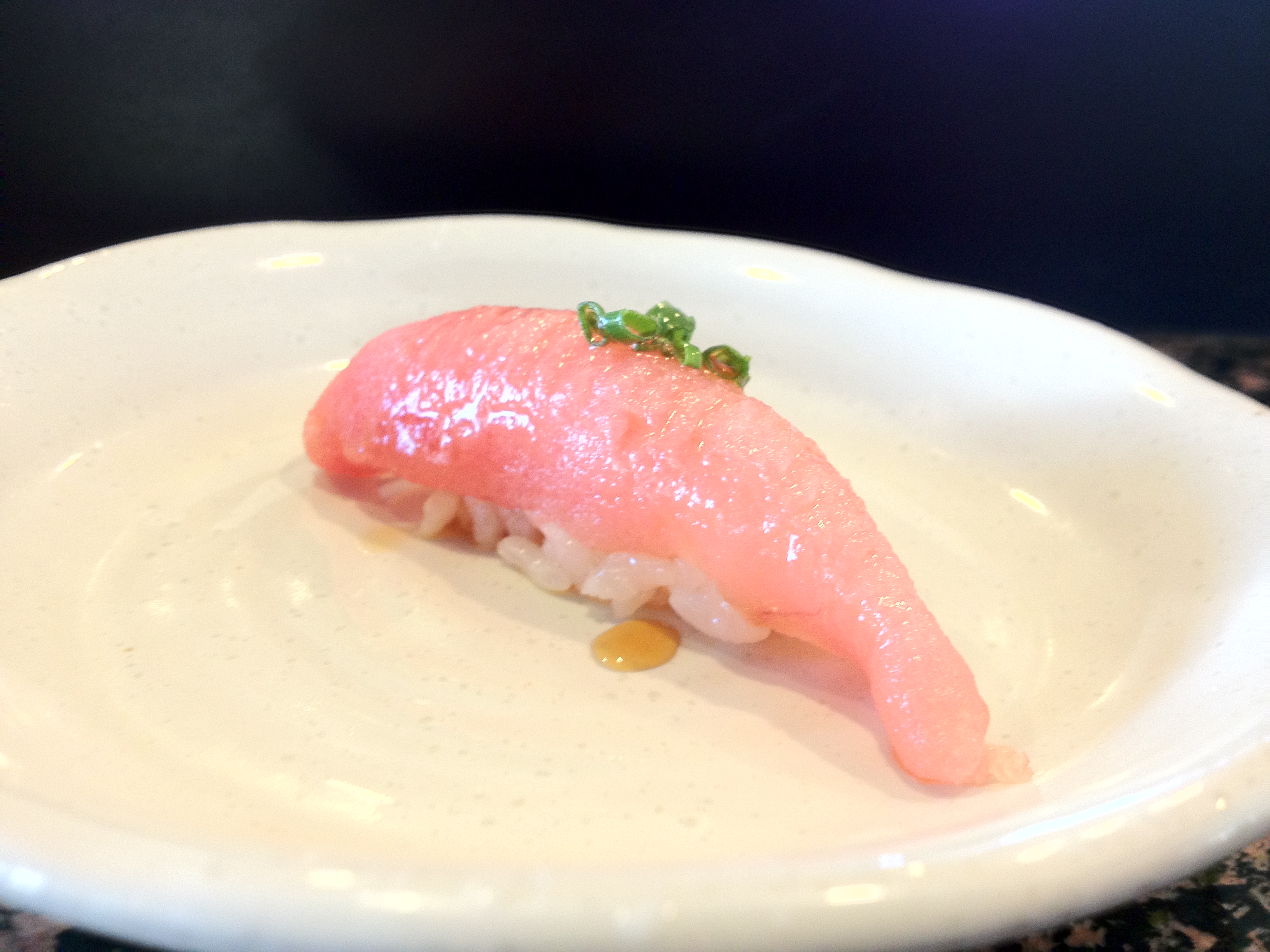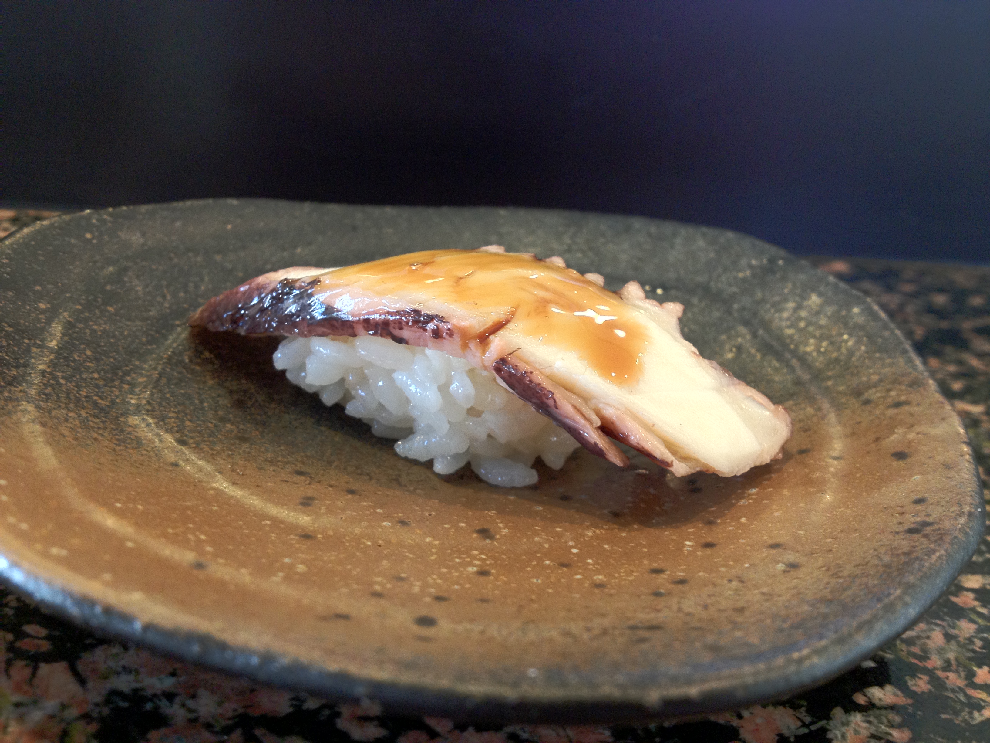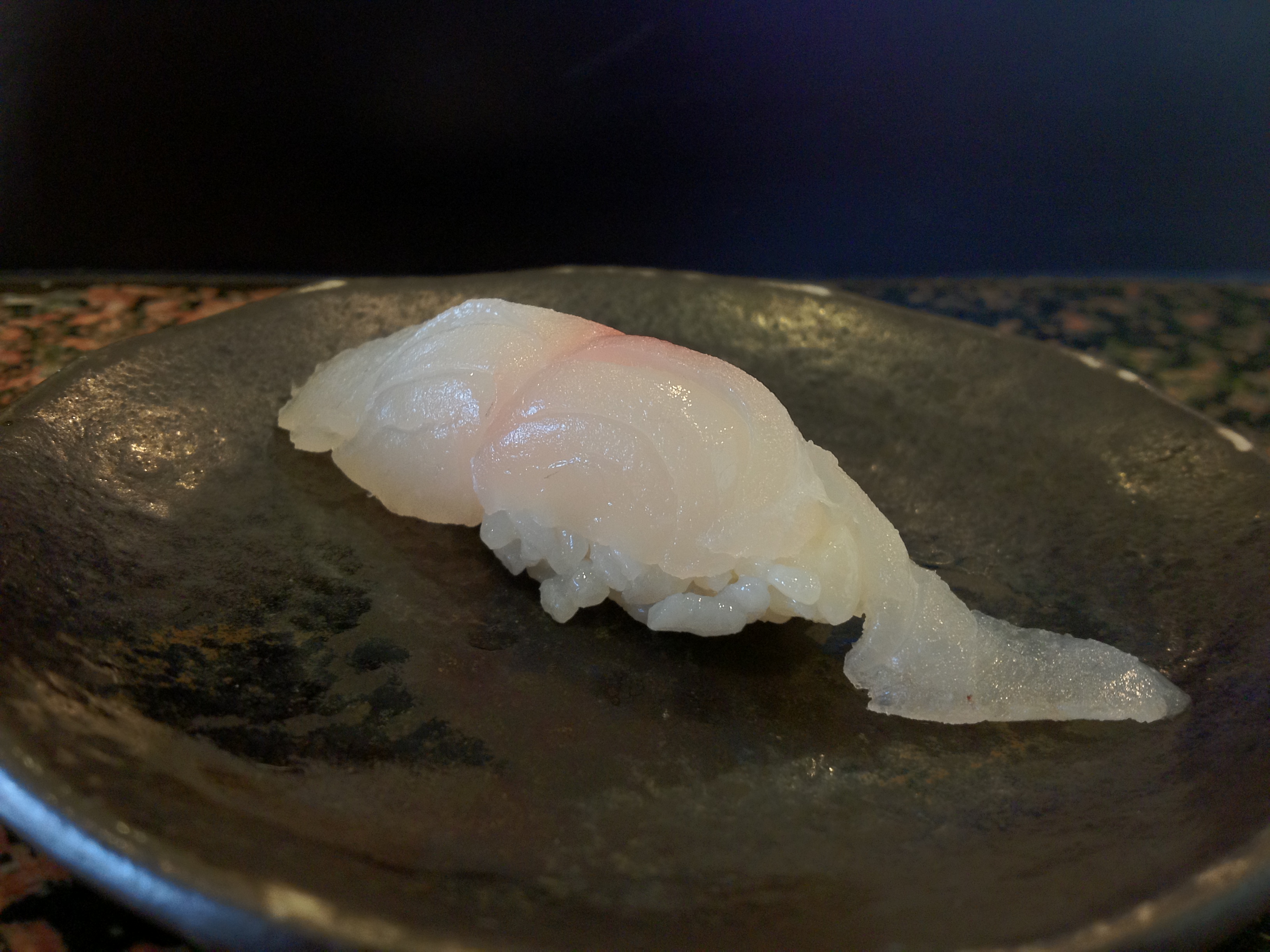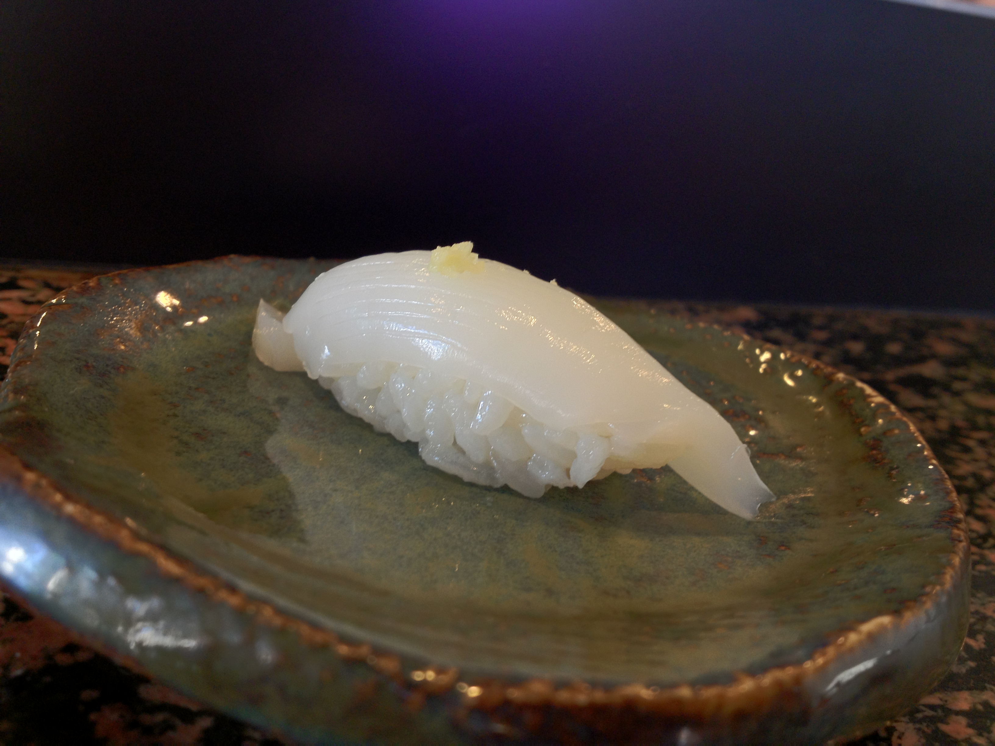 The abalone itself was average (in comparison to other awabi I’ve had at high-end sushi places), but adding the yuzukoshō made this a wonderful dish. It added dimensions of sweetness, sourness, and spiciness to the otherwise relatively one-dimensional taste of abalone.