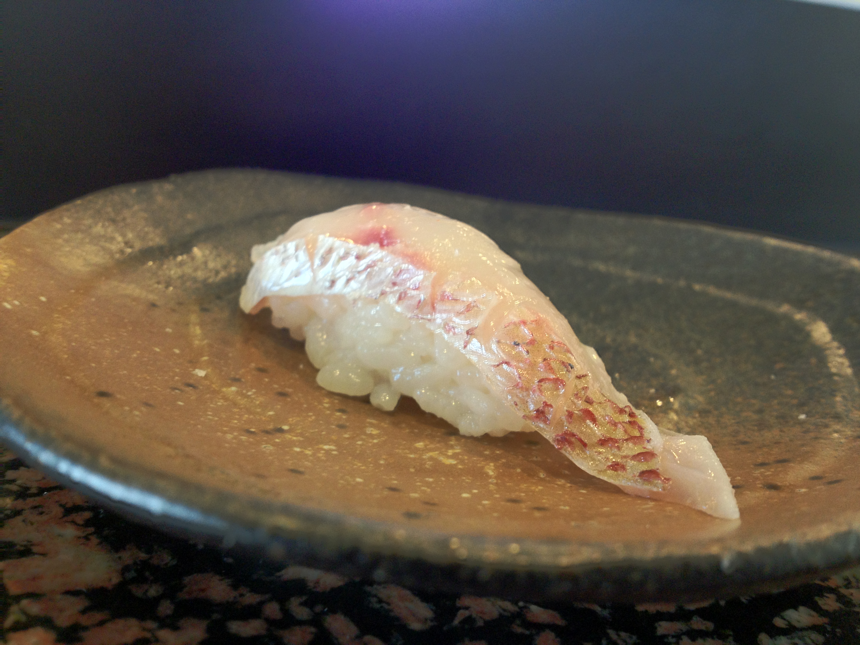 Chef Seki is known for his warm rice, and it reminded me a lot of Sasabune’s rice. It was REALLY soft and fluffy—I think Chef Seki’s philosophy is that warm rice helps you focus on the taste and texture of the fish more. (However, there’s that whole controversy where people are against warm rice and so on. Oh well.) Anyway, the rice wasn’t quite as warm as Sasabune’s, and it broke apart less (as a result of that, I think). Also, the nigiri pieces were smaller, so the warmth of the rice wasn’t as big of a deal to me.