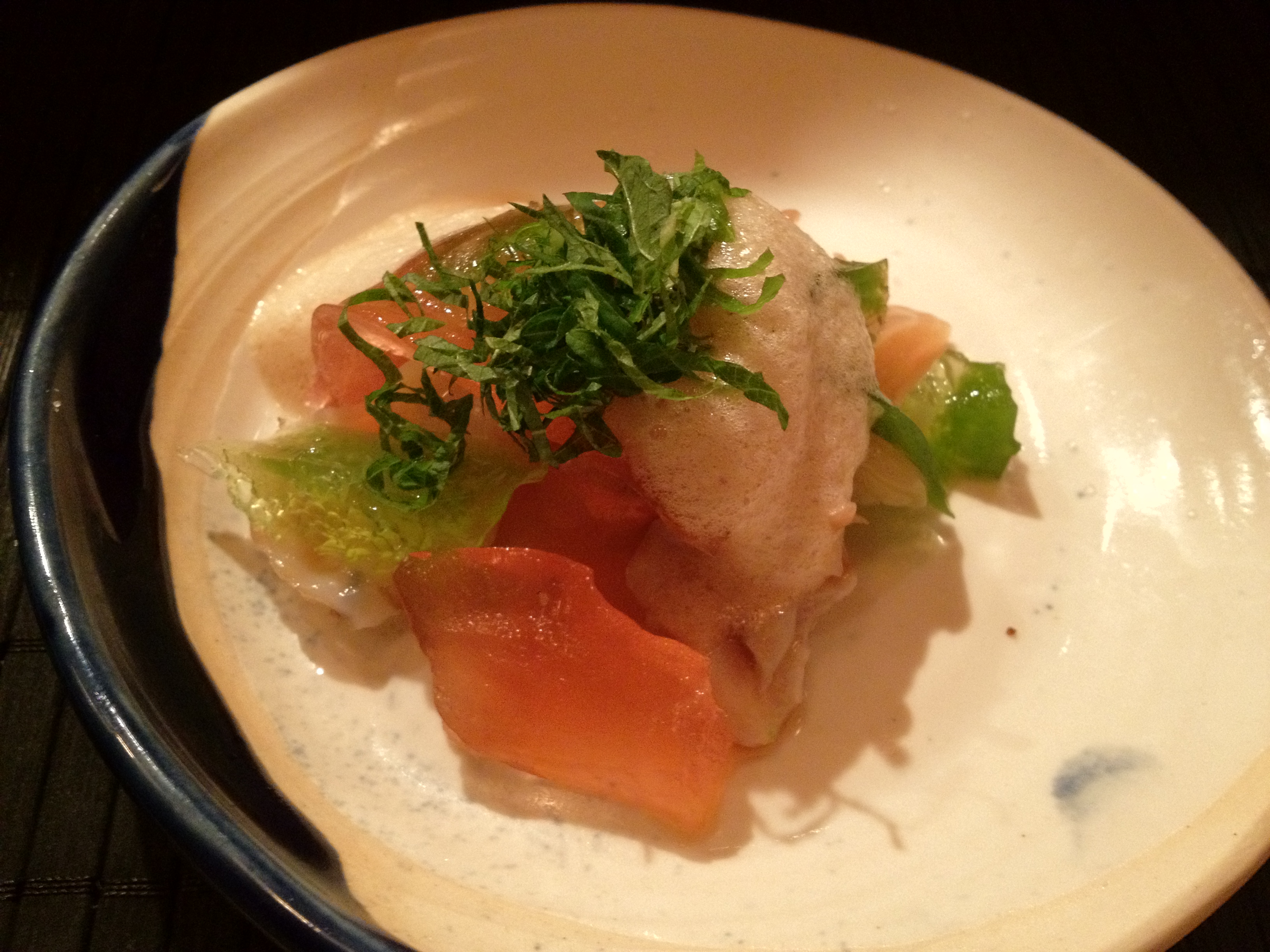Ken: Not a big clam fan at sushi places, but this course was good. The flavors were really light and refreshing. Personally, shiso is always a bit overpowering for me, so I could’ve done with a little bit less of that.