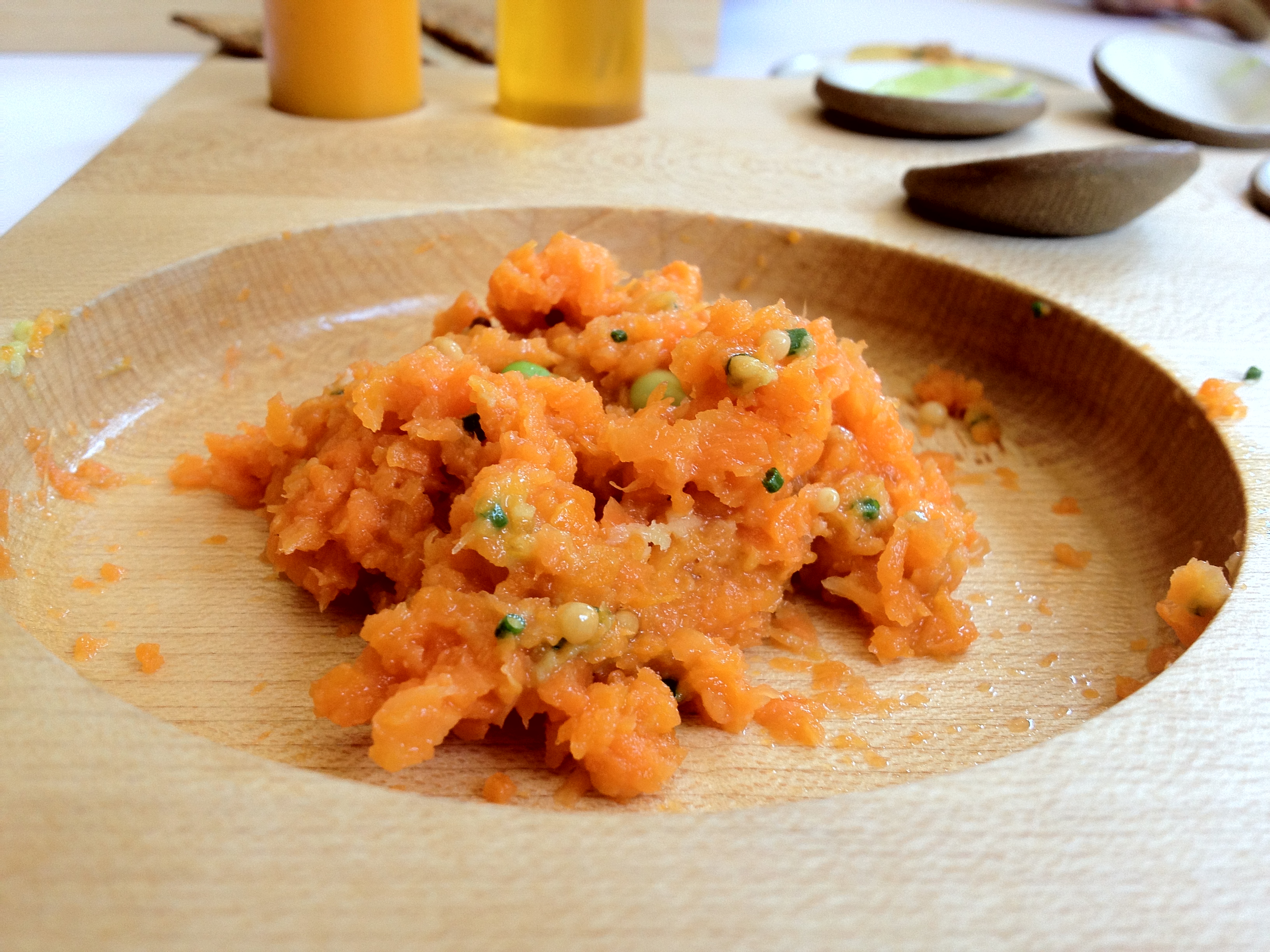 Maria: Carrots were super bright orange! And tasted very sweet. My only regret is that I didn’t taste some of the individual mix-ins before mixing it all together. I’m curious what the pickled quail egg tastes like for instance.