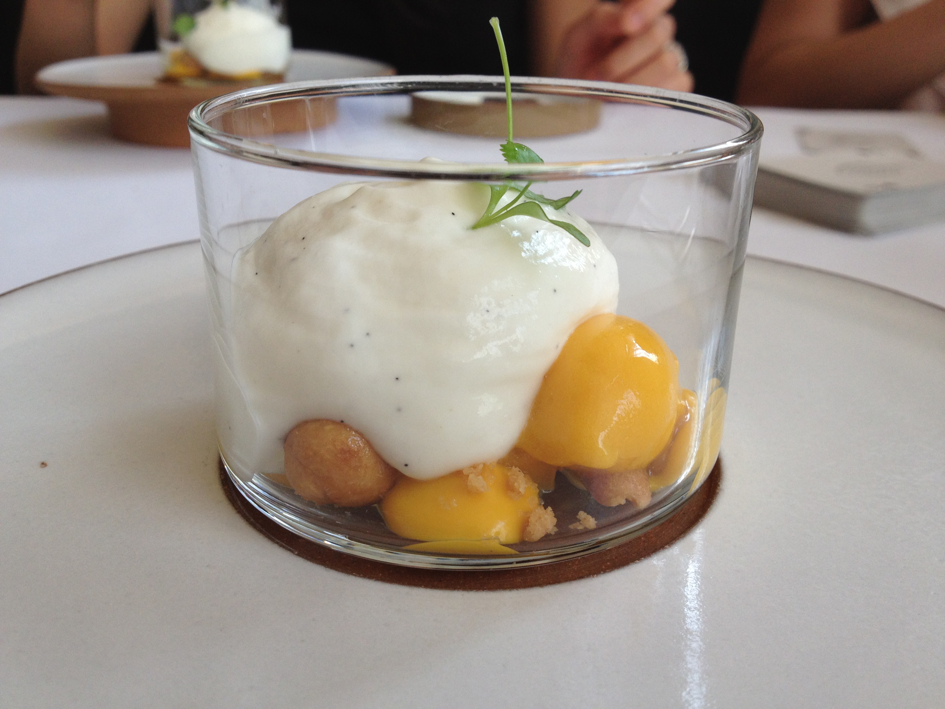 Victor: The mint sorbet was incredibly intense in flavor, and at first I thought it was way too strong. As I continued eating this dessert, though, I realized that the Fernet Branca and ganache flavors were perfect complements to the mint flavor. They cut down on the intensity of the mint while also adding complexity in flavor. It basically became an extremely delicious, high-end version of a mint chocolate dessert hahaha. I can now say that this is one of my favorite desserts that I’ve had in NYC—each part of the dessert synchronized wonderfully with each other, both in the type of flavor and the level of intensity each ingredient had, forming a dessert that truly was greater than the sum of its parts (kind of like the Spurs and NOT LIKE the Lakers this year…).