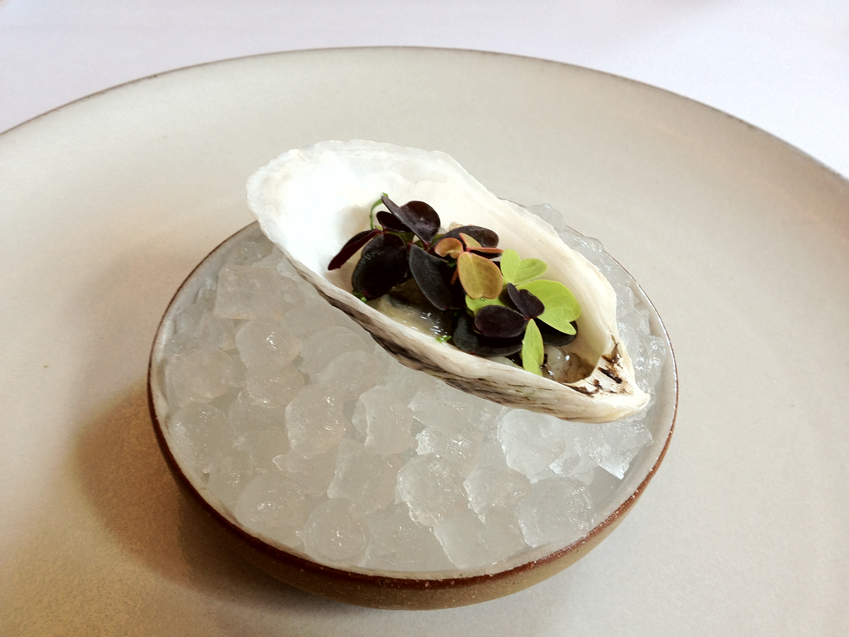 Maria: The oyster itself was good and I liked that it was served cold, but the mignonette was a little sour for my taste. Beautiful presentation.