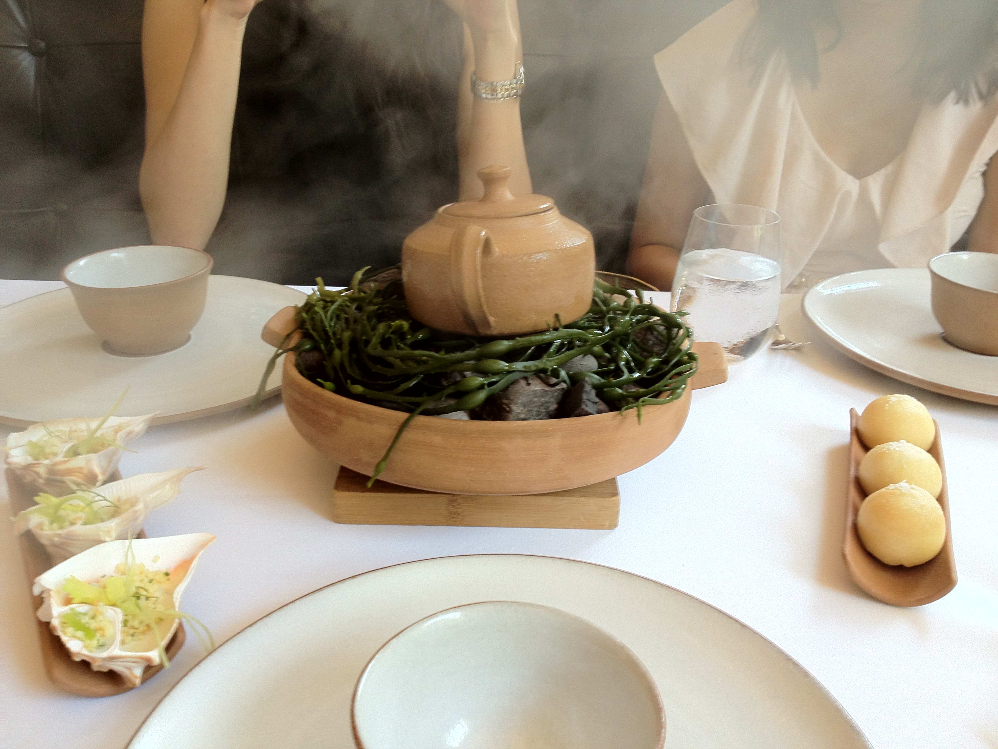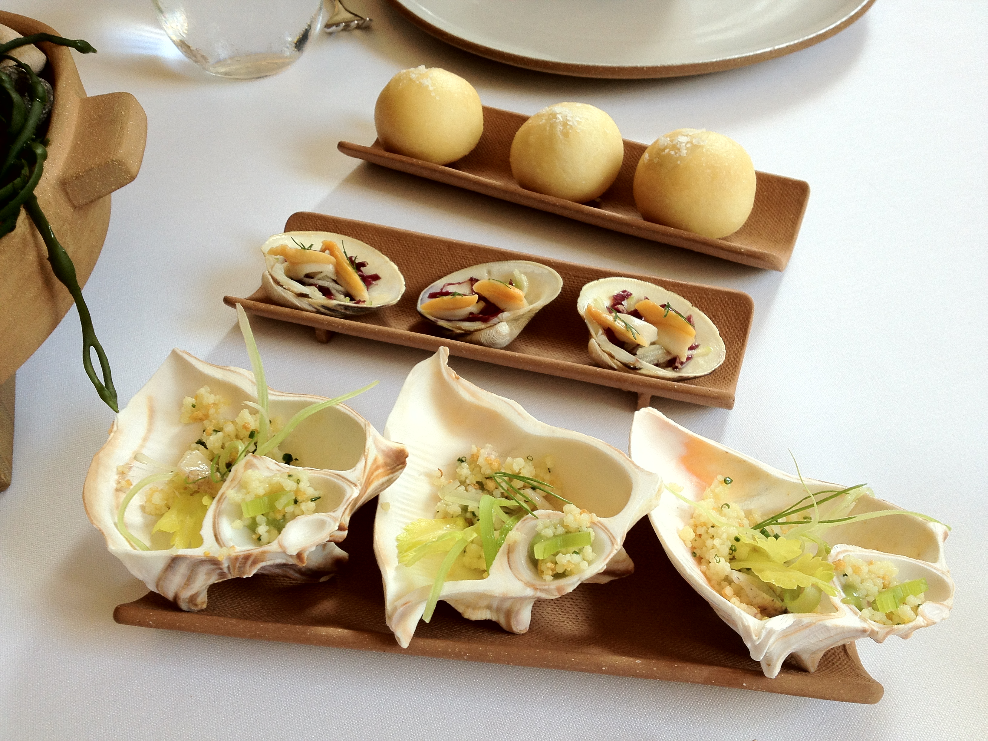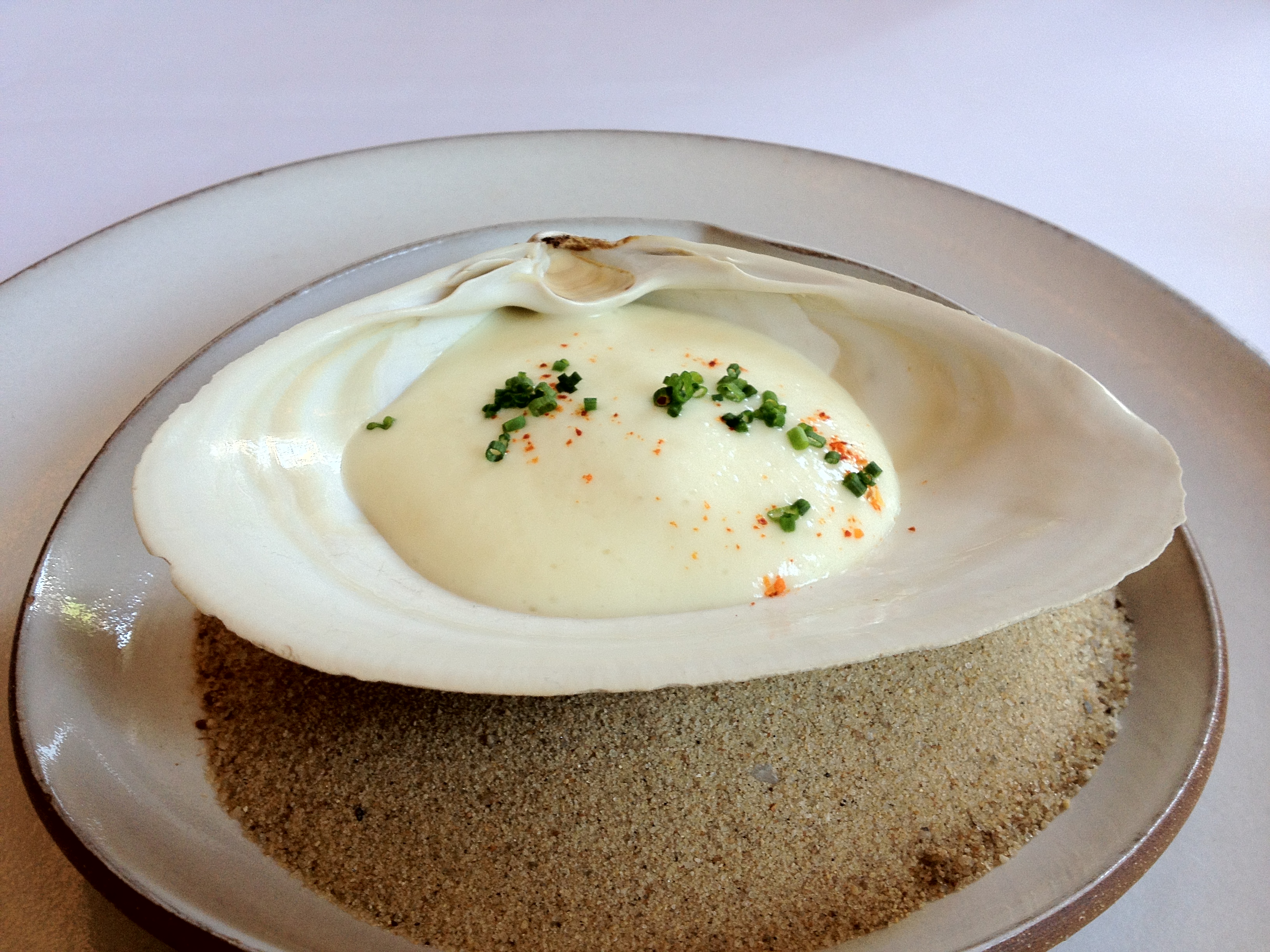 Maria: Fun dish!! And I love the scent of the beach when the server pours water over the hot stones and steam rises. You can almost hear the waves at that point. The clam, whelk and bread were all really good, but the standout was definitely the clam chowder for me. Intensely clam-flavored and creamy without feeling thick or heavy.