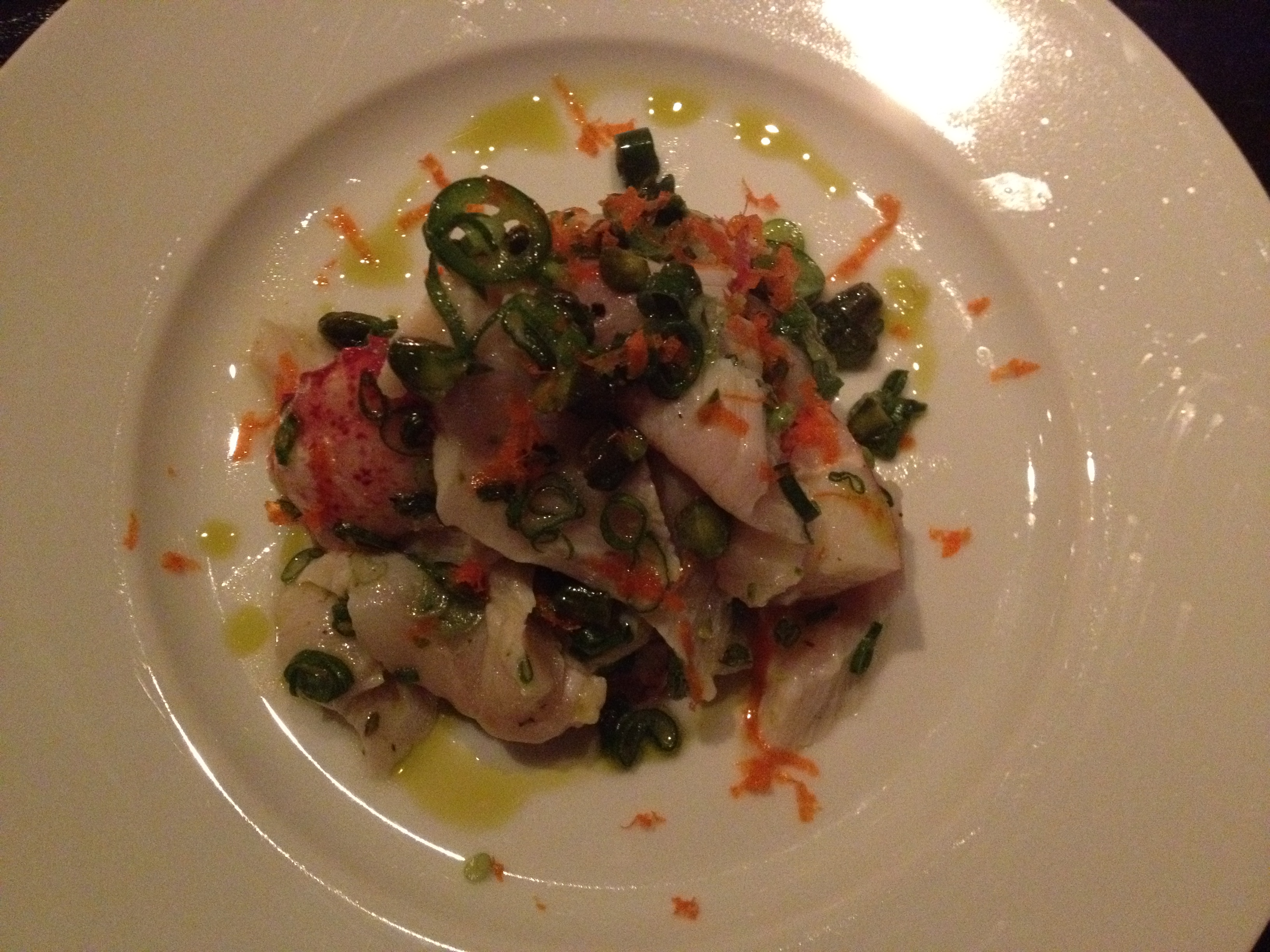 Maria: While I love LOVE lobster and I thought the simple preparation here really let the sweet lobster meat shine, the star her was really the tripe. It was meaty and chewy without being too rubbery and unlike any tripe I’ve had before. This was a lot like a ceviche.