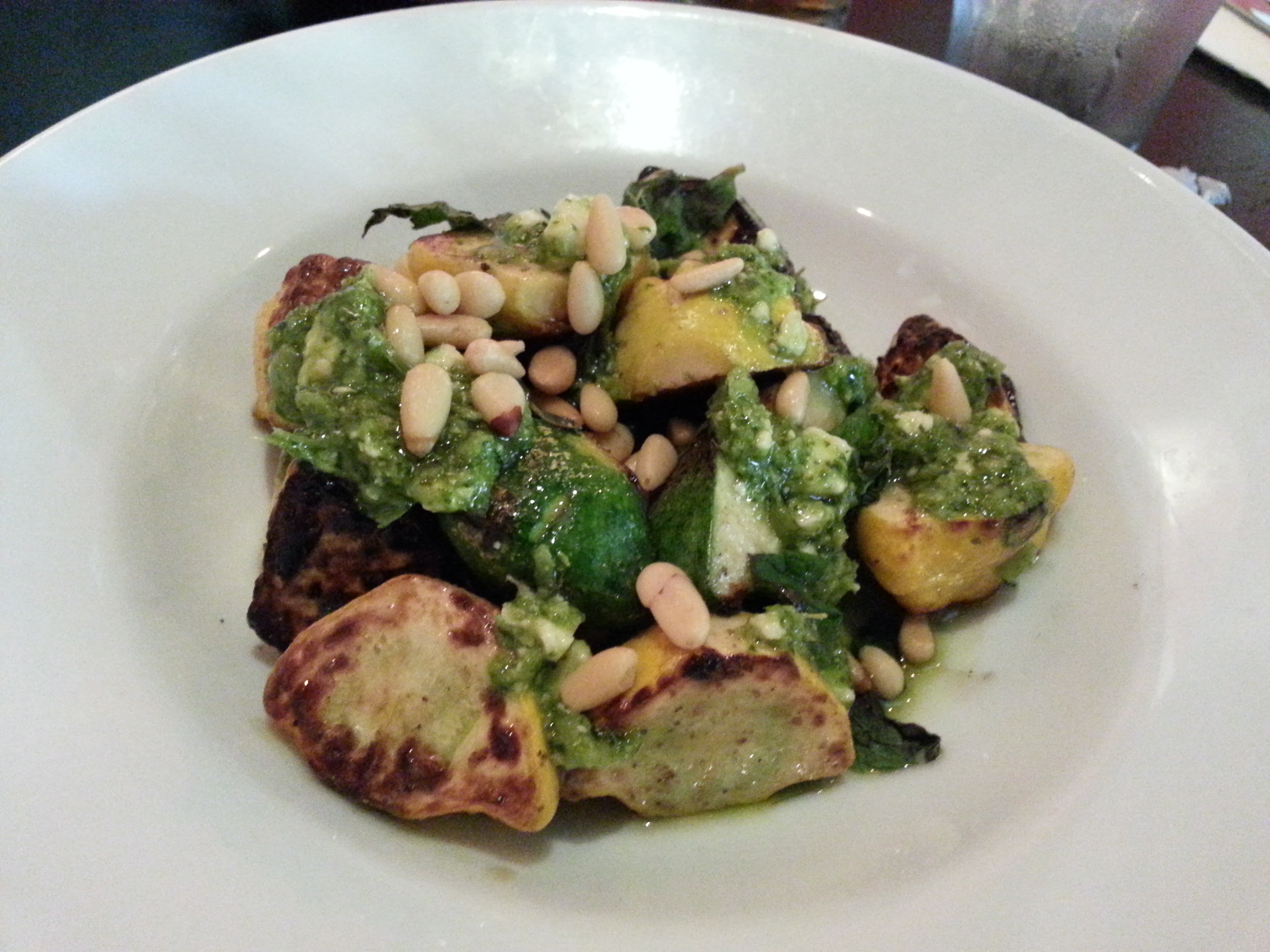 A really light and refreshing course. The crunchy pine nuts were a welcome contrast to the soft and meaty squash. I wish there was a bit more feta to contrast with the light mint and chimichurri sauce, but it was still a great dish.
