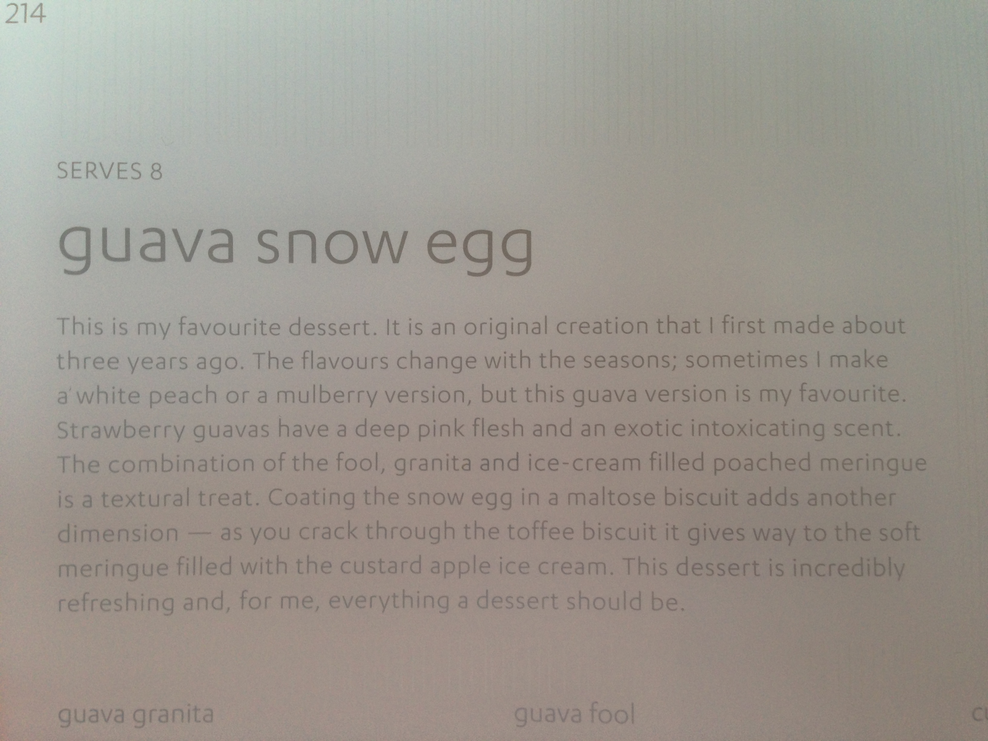 Peter Gilmore is famous for this dessert; the two finalists on the 2010 season of MasterChef Australia had to recreate this dish in the finale. This dessert was everything people made it out to be. It was a wonderful combination of different intense flavors and textures that made each bite a wonder. Breaking into the egg and seeing how it was composed was a joy, and each part of the egg itself was delicious; taking all the different parts of the dessert in one bite must have unleashed a bunch of dopamine in my brain (and also spiked my blood sugar levels…).