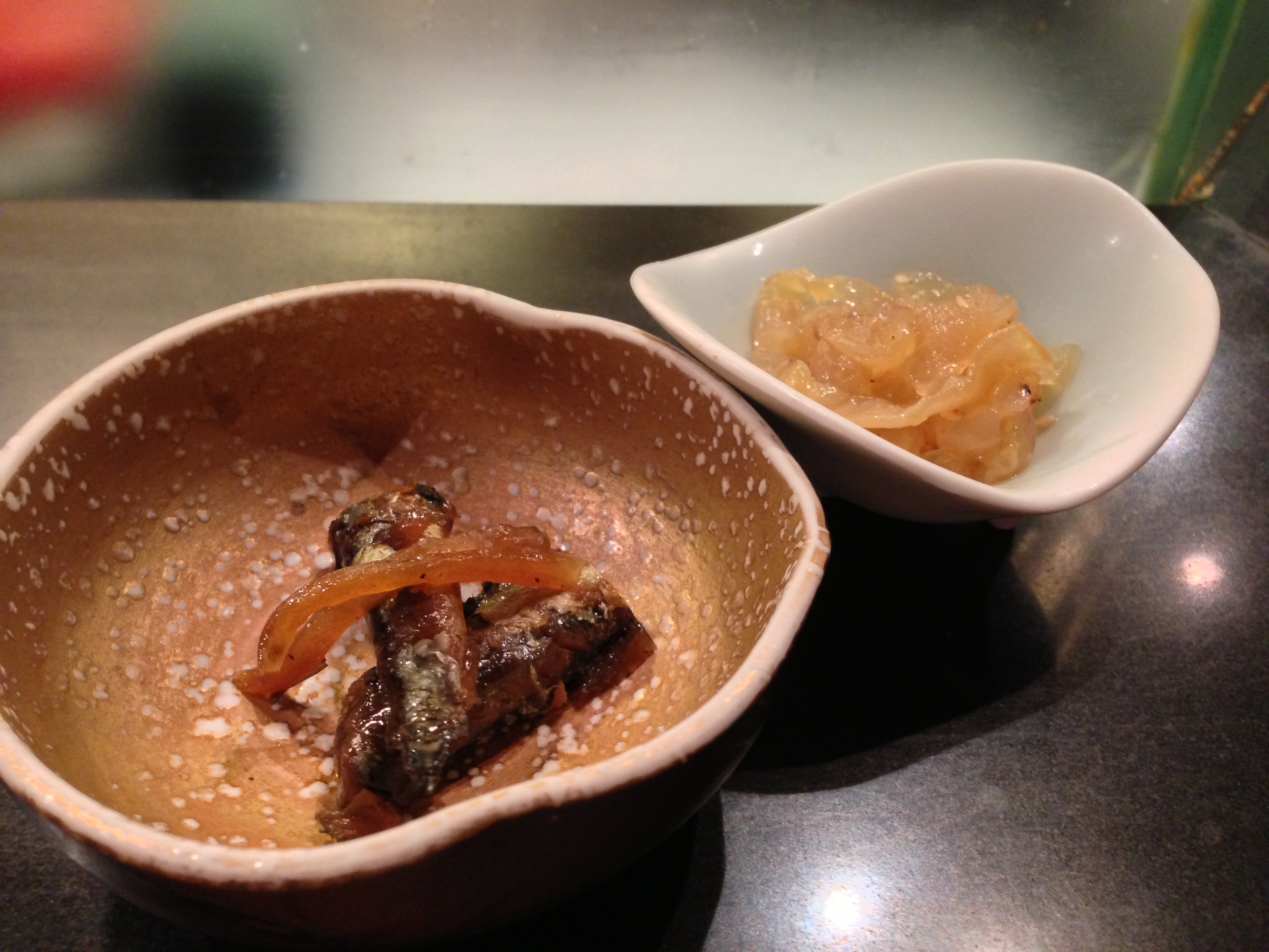 Laageh (I wasn’t sure what it was, and I sadly didn’t catch how to spell it) and iwashi (sardines).