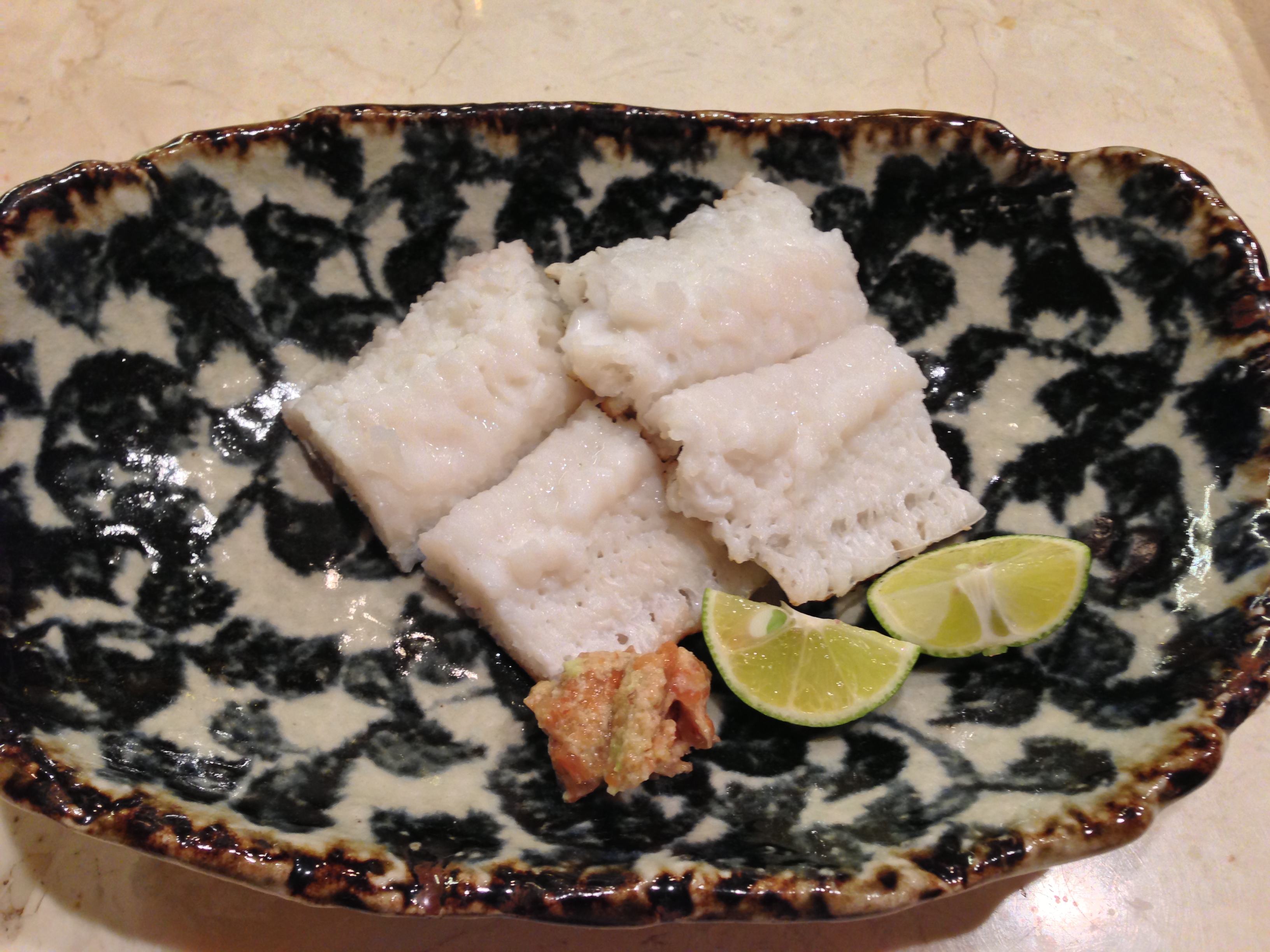 This was my least favorite dish. I’m still trying to get used to the taste of hamo anago (pike conger eel). I liked it, but I think I prefer the taste of marinated anago (especially as part of nigiri) more. Jun said that this was supposed to be really good, but I couldn’t quite appreciate it. Maybe I need to spend more time trying different variations of hamo anago.