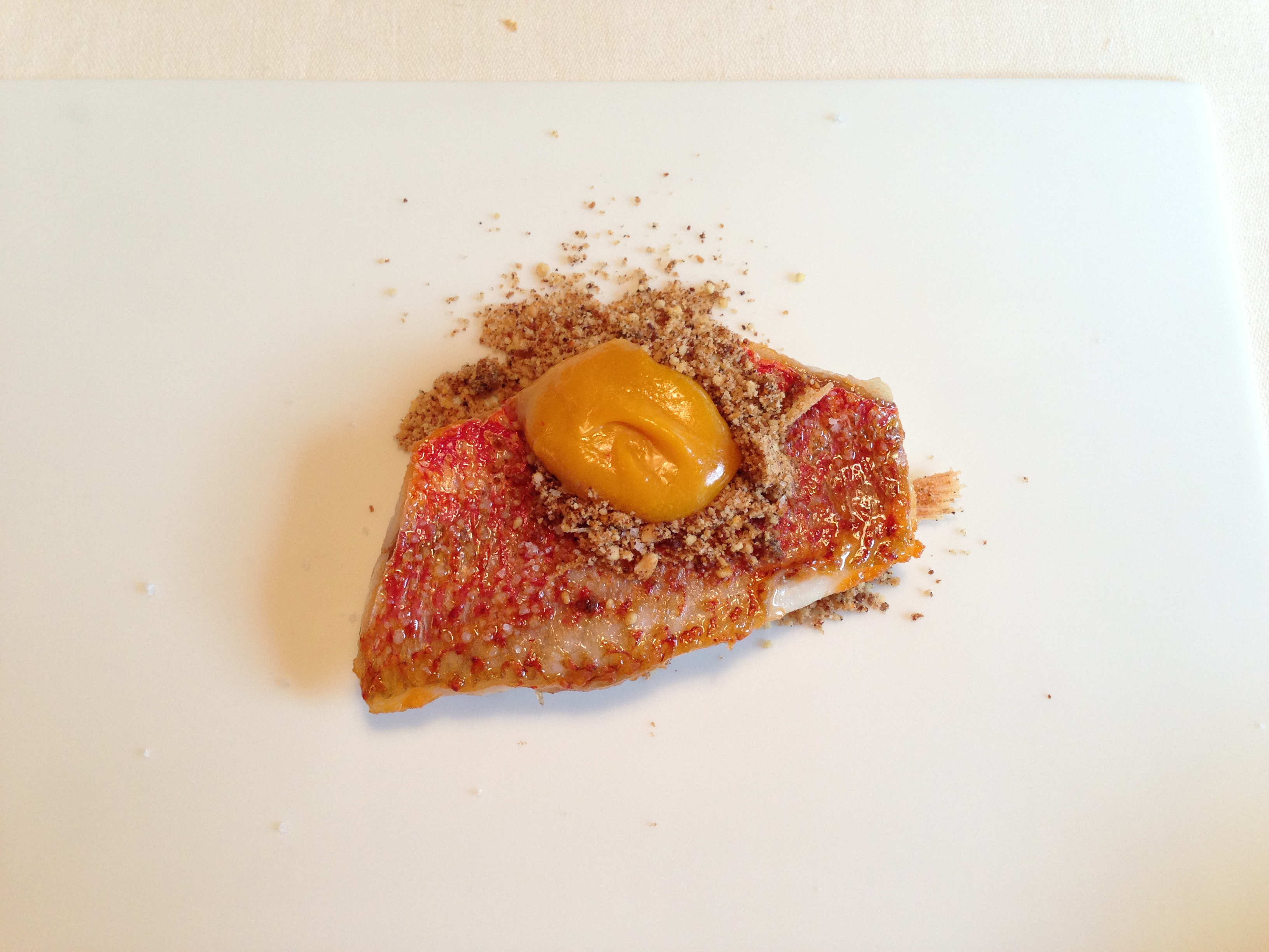 Red mullet with hollandaise made from its own liver and almond and bread crumbs.